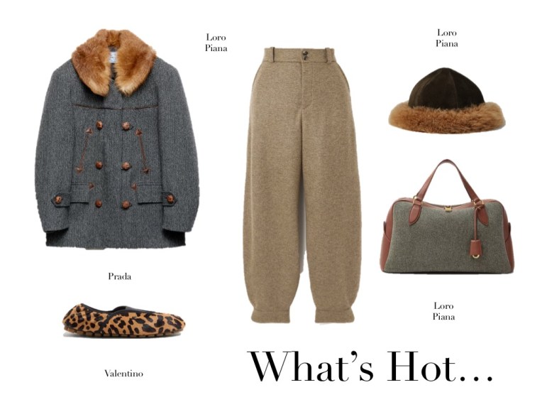What’s Hot (13.11.25) November 13, 2025November 12, 2025 | Design & Culture by Ed GET THE LOOK: Loro Piana Pleated Tapered Cashmere Pants Miu Miu Faux Fur Lined Fleece Zip Jacket Loro Piana Needle Medium Fine Grain Leather Shoulder Bag Pologeorgis Shearling Trapper Hat with Leather Chin Strap Valentino Bowow Leopard Calf Hair Ballerina Flats