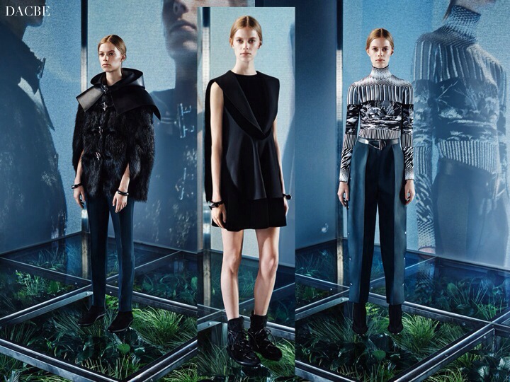 It’s only a year since Alexander Wang is at Balenciaga, and his Pre-Fall’14 was the most confident of all. It mixed Cristobal Balenciaga’s silhouettes, Nicolas Ghesquiere high-tech inspirations and Wang’s own aestethics- the eternal black & white colour paltte. The collection is very elegant but at the same time good for every event- with some sexy cut out dresses and leather jackets accompanied by kaleidoscopic prints, Wang showed us how his techno-couture works every-time. What I loved was the marble effect used on dresses and blazers… Looks timeless!