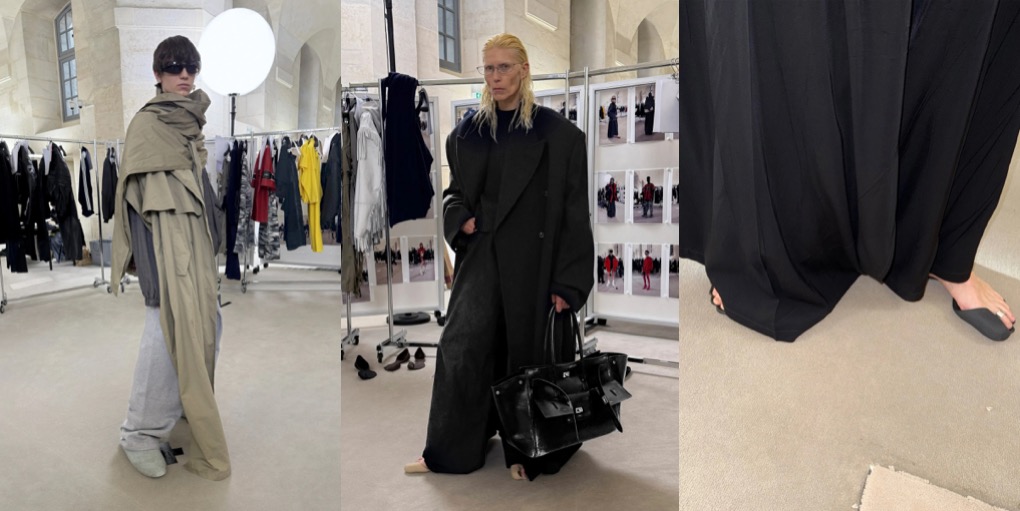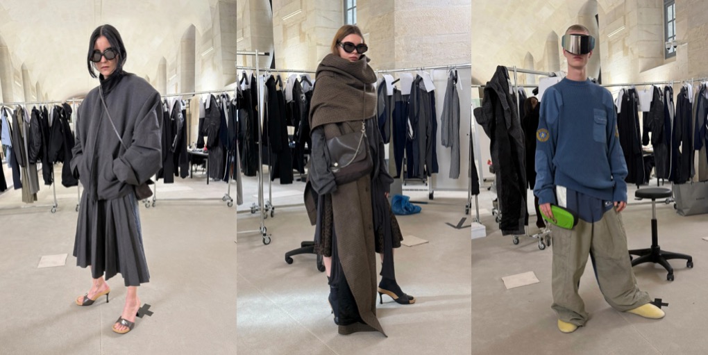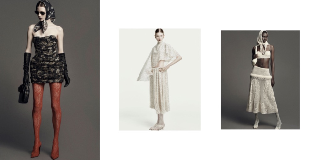 Carven‘s pre-fall 2025 collection, officially credited to the brand’s studio, is a good-looking transition moment between Louise Trotter’s work at the maison and the brand’s current creative director – and long-time collaborator of Trotter – Mark Thomas. The line-up, offering garments and accessories so wearable and easy-in-approach that it’s hard not to fall in love with their daily allure, is informed by blousy smock tops, wraparound apron shapes and a penchant for fabrics that appear structured to the eye yet soft around the body. One of the dresses with flannel on front and crushed lining in the back reminisces a 1950s couture dress with its strikingly simple, yet chic silhouette. Then you’ve got all the bubbly, t-shirt-inspired dresses and tops, minimal, timeless, versatile. The knits and cashmere shifts are pieces to be grateful for when you need to leave home looking pulled together. Carven became a go-to brand for less is more women who aren’t after The Row’s sophisticated oddness or Phoebe Philo’s contemporary strictness; the brand offers a warmer, cozier approach to minimalism. A madame minimalism.