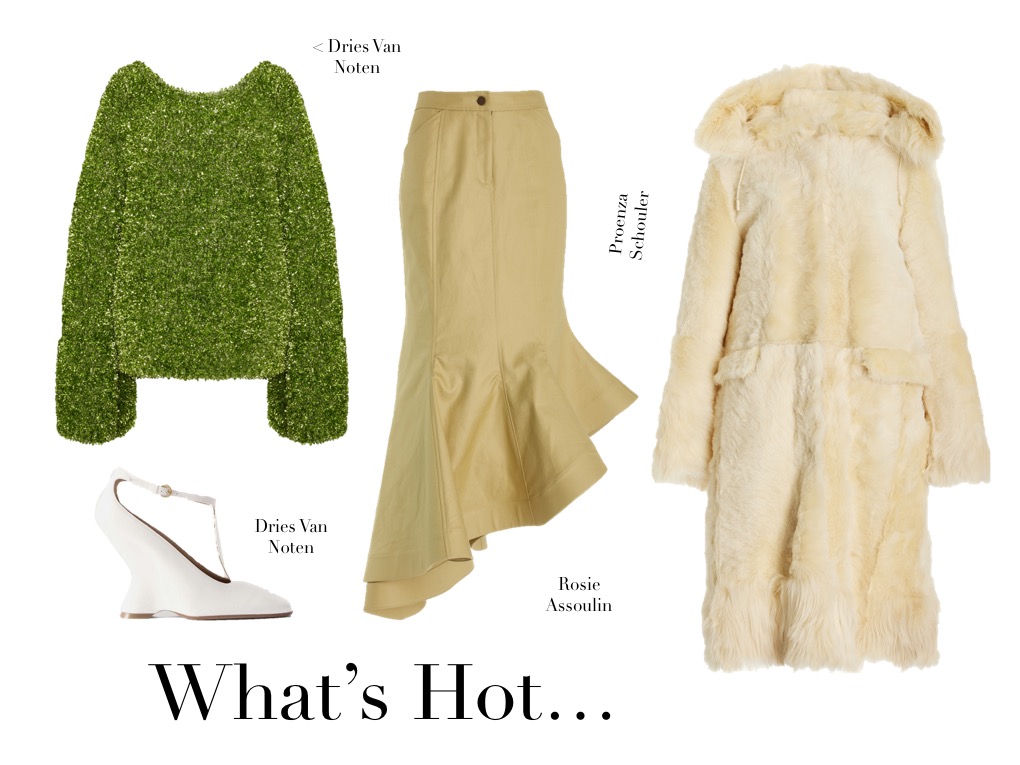 What’s Hot (15.11.24) November 15, 2024November 10, 2024 | Design & Culture by Ed Dries Van Noten Oversized Metallic Appliquéd Knitted SweaterProenza Schouler Fiona Hooded Paneled Shearling CoatDries Van Noten Leather Mary Jane Wedge PumpsStudio 189 Cotton Ruffled Midi Pencil Skirt