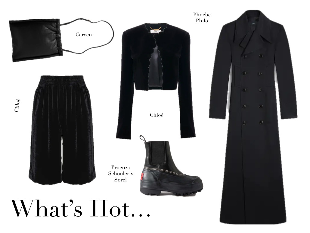 What’s Hot (22.11.24) November 22, 2024November 16, 2024 | Design & Culture by Ed Chloé Scalloped Velvet Crop Jacket Chloé Cotton-velvet Wide-leg Pants Proenza Schouler x Sorel Caribou Leather And Rubber Platform Chelsea Boots The Row Envelope Large Leather Shoulder Bag Anine Bing Raleigh Coat in Black