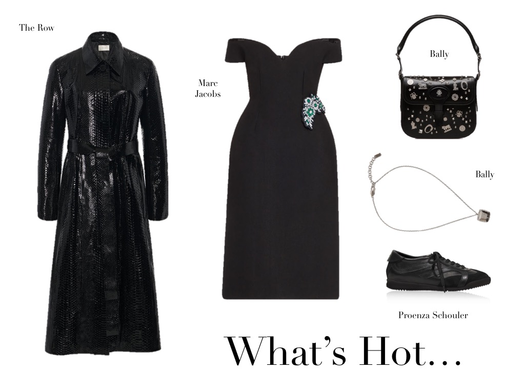 What’s Hot (2.11.24) November 2, 2024 | Design & Culture by Ed Marc Jacobs Off-Shoulder Oversized Midi Dress with Brooch The Row Babil Leather Trench Coat Bally Beckett Flat Mini Glossed-leather Tote Proenza Schouler Track Leather Low-Top Sneakers