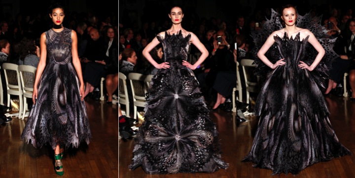 To understand Giles‘s spring-summer 2016 collection, it’s good to look at the last few outfits. The laser-cut, micro-pleated, satin organza gown was worn by the one and only, red-haired Karen Elson. She emerged, looking at the audience with a royal manner, like the clone of Queen Elizabeth I in some kind of postapocalyptic, futuristic times. The show was set in the Elizabethan-era Banqueting Room in Whitehall, which was booked by Giles Deacon already a year ago – however, the place precisely reflected the collection’s mood. All the historic references played a role in the textile usage – Baroque wallpaper florals and embroideries based on tapestries look stunning on everything. There is no Giles collection without a proper dose of drama, too. The designer indulged himself in voluminous skirts, balloon-shaped sleeves and dresses with parachute hems or underlying layers of tulle. The long, white shirt-dress worn by Natalie Westling is the key piece to look forward next season. And coming back to the model casting, Giles was over-the-top with the hottest faces: Edie Campbell, Erin O’Connor, Molly Bair, Damaris Goddrie, Anna Cleveland and many more walked the runway last night.