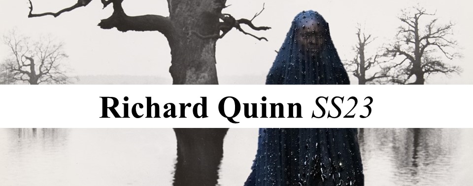 Richard Quinn offered and very fitting a moving show as for London Fashion Week’s finale – an unprecedented kind of fashion week, done during national mourning. The designer’s response to Queen Elizabeth II’s death pushed him of colorful, multi-floral prints to prove, in tribute to her, that he can also make as elaborately and extensively in black. The first 22 looks, many heavily veiled in black lace, were made by Quinn and his core team of six, and 20 show-time helpers, day and night, in the 10 days since the Queen died. “It was almost cathartic for us to put all of our emotions of mourning into it,” he said. “We wanted it to have that kind of real craftsmanship, the beauty of royalty, and to try to turn all of the shapes and embroidery that we do into that kind of that idea of uniform dressing up they did when her father [King George VI] died.” Quinn, of course, owes more of a debt to the late Monarch than any other designer in London fashion history, since she came to his debut show in 2018 and presented him with the first annual Queen Elizabeth II Award for Design, her legacy for emerging fashion designers in Britain. He changed the set he’d planned, draping the walls in black and playing fragments of video footage of her young days on screens inset on a suspended central installation. Quinn pulled out all the stops on multiple silhouettes for that section: black swing coats, his translations of fitted 1950s formal dresses, vast capes in lurex, a velvet tunic dress with a big glittering jeweled brooch. All the model’s faces were either completely obscured in floor length lace veils, or masked in point d’esprit netting. Under one, a tiny black crown was visible.