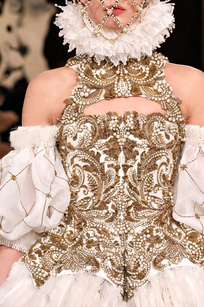 The dresses were so amazing! Lots of embroidery, silk, pearls, gold, ornaments… Ah, so baroque and opulent! It was luxurious but not RTW! That’s for sure. But I love it so much. And the interior of runway? An old palace with lots of decorations and rich lamps!