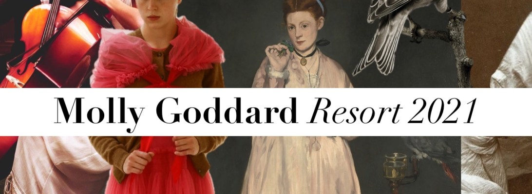 Going back to the roots, enjoying the simple things. In the uncertain times – and 2020 is a winner in this category – designers and labels yearn for a more organic approach, one that opposes mindless abundance. In her resort 2021 collection – which is more of a capsule really – Molly Goddard is serving her all-time signature, tulle dresses, in a more everyday mode. Molly’s clothes are as cheerful as ever, dresses and skirts made “in all the ways I can think of,” she told Vogue, with the smocking and ruffling techniques she developed as a student. The shirred polyester taffeta – this season in neon pink with burgundy velvet trims, or inky blue flounces – is “so comfortable to wear, because it just stretches with you,” she explained. “So you can sit down, lie about, do anything in it. I think that’s why people like it. Because you can wear these things in an everyday way, not just for parties.” True to her hands-on resourcefulness, the designer decided to keep things going during the height of the lockdown. “We all worked remotely, doing fittings on ourselves, which was quite funny.” She runs a tight and friendly business. “I didn’t furlough anyone. I thought it’s important to maintain our relationships with all the people who we rely on, the fabric suppliers and the local London factories who managed to keep ticking over, with people taking work home.” There’s knitwear, too, now – shrink-pleated stretchy sweaters and wool cardigans made in England. She’s also spent her time developing accessories: ruched bags made from her signature fabrics, and solid-but-perky leopard-spot and emerald green creepers in collaboration with the British brand Underground. And how does the designer see the future? Who knows whether there will be a usual London fashion week schedule this September. But then, do creators like Molly need those? “Really, I never meant to get into that whole fashion week thing of having huge shows and all the nightmare that goes with it,” she says. “Honestly, I’d love to get back to what we did at the beginning, just being able to do something that feels spontaneous and fun.”