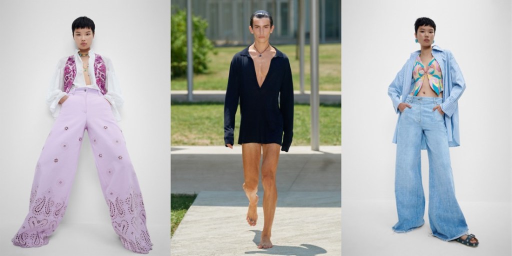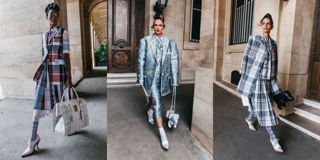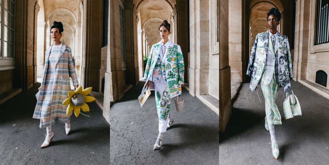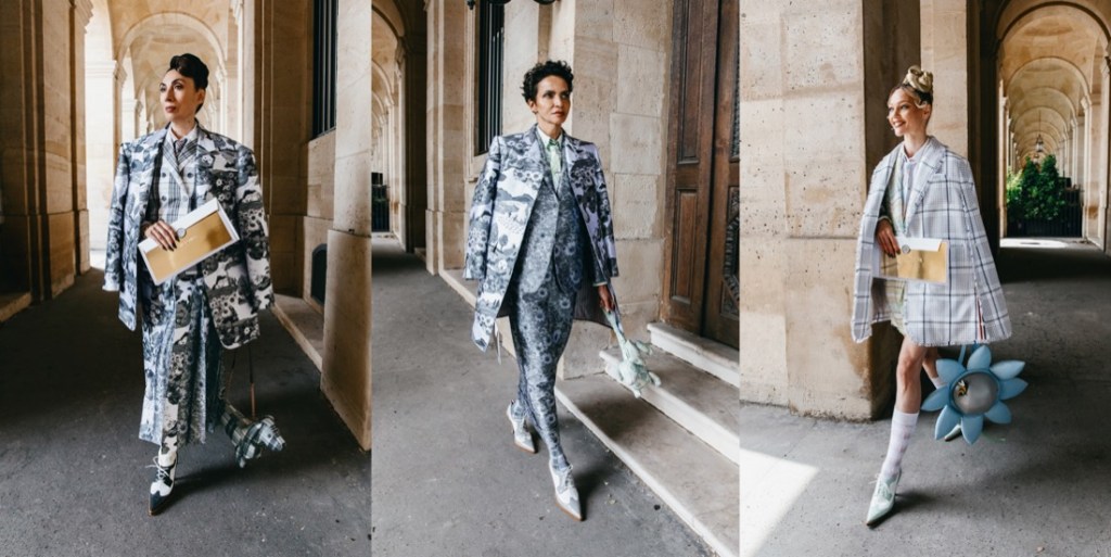 Marisa Berenson came running into Thom Browne’s salon-like spring 2023 menswear show. Farida Khelfa and Dree Hemingway followed, and Sasha Pivavorova emerged last, rushing to get to her front row seat. The women wore fantastical suits from Browne’s resort 2023 collection, a small preview of what is being released this week, almost a month after Browne’s sexily tweeded guys hit the catwalk. “I knew the collections were connected,” Browne said, “but I didn’t realize how well it was going to work.” The women had the kind of bravado required to pull off a mannish floral jacquard blazer or a pastel color-blocked midi skirt suit. “They are women who have lived interesting lives,” Browne said of his muses, who also include artist Anh Duong and photographer Cate Underwood. “Accomplished, strong, and iconic in their own way.” That’s the Browne promise: even for those of us who live the most normal of existences, his clothes offer the opportunity to feel extraordinary and unique. There’s no way to slip into a white suit embroidered with children’s storybook scenes and not experience an almost instant mood lift or to pack your things into a giant sunflower backpack and not smile. This season, Browne has supersized some of his proportions and continues to play with pleated skirts, allowing his sometimes overly strict vision to attract people with different body types and ways of life. Still, the classics are always Browne’s favorites. “It’s true to what I did 20 years ago and it still feels so new and strong,” he said. “It shows there is still a way for us to go forward.” Going forward, trying new things, and pushing the boundaries of what is possible in fashion – well, that’s just the Thom Browne way. It’s no wonder that many are drawn to his unconventional approach. “The love you see in these pictures,” he said, “was free.”