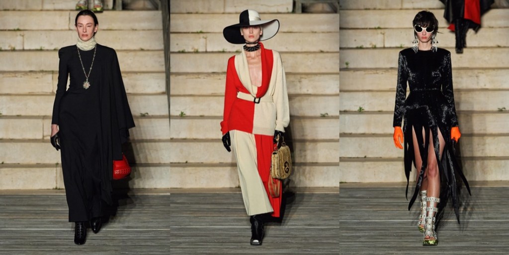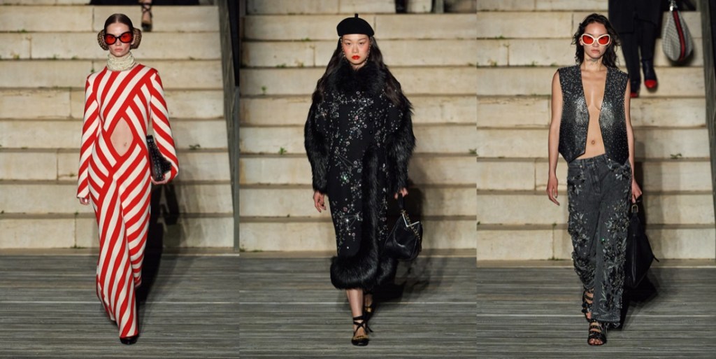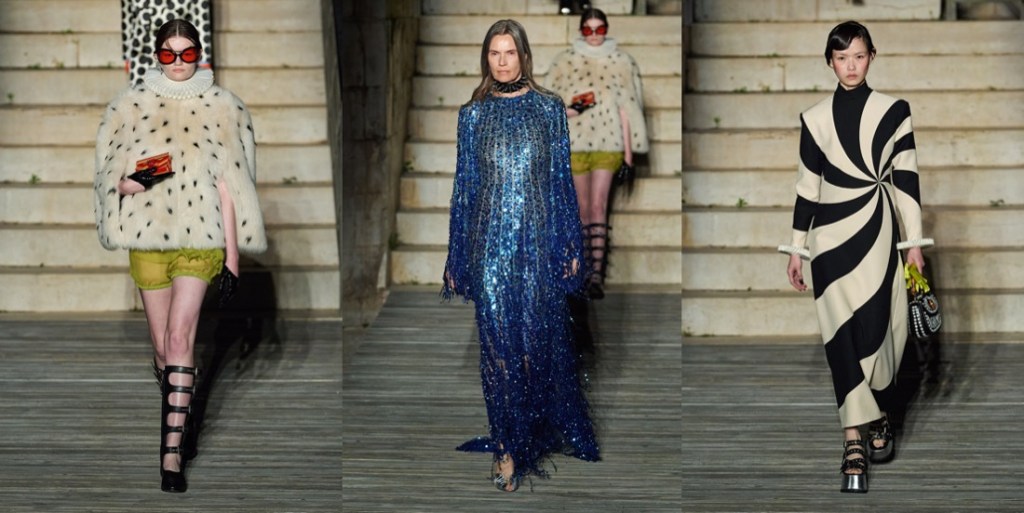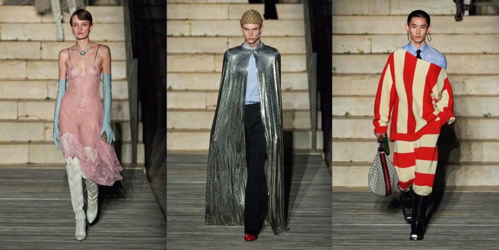 Once upon a time (last Monday), a tribe of cosmic goddesses and priests landed in Puglia and inhabited Castel del Monte – the extraordinary, 13th century castle that actually looks like an alien spaceship. All thanks to Gucci and its resort 2023 fashion show event. Alessandro Michele’s line of reasoning has never been linear. The collections he creates are prismatic affairs, as visually diverse as they are infused by meanings sometimes impervious to easy deciphering. His fascination for layered references and his love of history make him a collector of objects and memories, an archivist of galaxies of images. Not surprisingly, he called this collection “Cosmogonies“. At Gucci, Michele has brought his collections to places of esoteric, disquieting charm – the Promenade des Alycamps in Arles, an ancient necropolis, or Rome’s Musei Capitolini overlooking the Fori Imperiali, where archeological remains give off vibes of splendor and decay. But as far as magical thinking goes, Castel del Monte surely upstages his previous settings. In the castle’s timelessly edgy construction, the number eight was obsessively repeated as an arcane bearer of meaning. It goes without saying that Michele was drawn to the genius loci of this rather setting. “I was looking for a place which gave grace to the mythological,” he explained. “It’s a site where measurements and proportions cross each other as if by magic – the same way measurements of collars and jackets can be somehow magical.” For Michele, the mystery of Castel del Monte resonates with the enigmatic genesis of his creativity, “which operates through the need of putting together constellations of signs and symbols.” Michele’s collections seem to be part of a complex, well orchestrated flux of consciousness, gelled into attractive visual dénouements. While widely Instagram-compelling and immediate, they’re often substantiated by high-falutin, erudite citations. The idea of “cosmogonies of constellations” was born after a reading of German philosopher Hannah Arendt’s essay on Walter Benjamin, whose library was confiscated by the Gestapo, leaving him unable to access to the eclectic network of other people’s thoughts that nurtured his entire oeuvre.