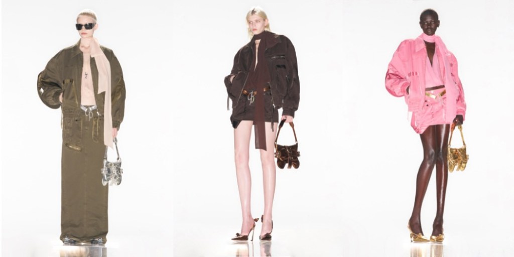 It’s been a great week for fashion: we had Phoebe Philo’s big Monday debut, and on Friday a delightful Bottega Veneta resort 2024 collection by Matthieu Blazy. “It’s not about the total look,” the designer summed up the brilliant line-up. “With the team,” he explained, “we talked a lot about what makes individuals special, the pieces they wear and the pieces that tell a story – the pieces, sometimes, that are a bit off, something that feels very personal, what makes you different from others.” What inspired the exercise, Blazy explained, was a trip home to his parents’ place, where he found himself going through his childhood wardrobe. A crab print dress of his sister’s made an impression, as did the “incredible labels” and slightly off proportions of his own old clothes. The crab print dress has been reimagined here as a sweater and matching skirt handknit in shades of turquoise and coral; on an ivory sweater in the same vein a scaly snake twists around the torso, its forked tongue flicking red. As for the oversize label stitched to the back of a tailored vest, it is indeed likely to conjure youthful memories for all who sees it. Blazy’s instinct to create serious fashion out of unserious items feels of a piece with what he’s done on his runways, making jeans, tank tops, and flannel shirts out of the finest leather and in the process turning mundane garments into collector’s items. There is also a dress here whose print features a dancing marionette. The Commedia dell’Arte was another reference this season; Blazy saw parallels between the harlequin costumes of its performers and Bottega Veneta’s own intrecciato motif. A leather coat in mint, burgundy, and white, and a bright yellow and black woven button-down and matching pants are showcases for the label’s striking artisanship and the design team’s embrace of fun. On that note, a large intrecciato tote was constructed with an irregular weave that called to mind TV static or broken pixels. Definitely not just another it-bag, but a wearable artwork to cherish.