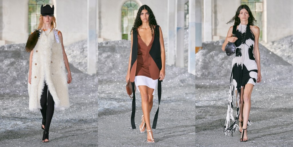 Riccardo Tisci appeared on the cover of last week’s edition of the magazine DSection embracing a deer and sporting droopy Bambi ears like those worn by models on his digital Burberry runway yesterday. He dedicated the collection to his beloved mother, who passed away in late August at the age of 93. “We are born from animals. We have an animal instinct that’s highly strung when we are feeling happiness or depression or sadness,” Tisci said on a video call from Milan. He wanted to give his models the same emotional expression that animals convey through their ears. “Instinct” is the magic word for Tisci at this stage in his Burberry tenure. In his last men’s collection he broke the confinements he had, to some degree, experienced, working within the brand’s highly defined heritage, and did what he does best: Riccardo Tisci. In his spring-summer 2022, things felt a bit mild. The film saw models proceeding through rooms that represented Tisci’s natural elements at Burberry: speakers for music, wind for outdoors, rave for youth, and glitter for the zhuzh. A few looks into the transfigured trench coats that opened the show – long at the front, cropped at the back – the camera panned around a model to reveal her naked derriere. With the trench territory covered, he investigated the sportswear he’s been adamant to introduce to the business, elevating and refining hoodies with cape structures and hoods that had a couture sensibility about them. Drawing on his premise of instinct, Tisci abstracted animal prints on little lightweight dresses like the butterfly motifs you get “when kids put color between two pages and they open them,” he explained. Along with those Bambi ears, it added a childlike sense of wonderment to the otherwise bold cuts that embody the very personal lines Tisci is now bringing to Burberry.