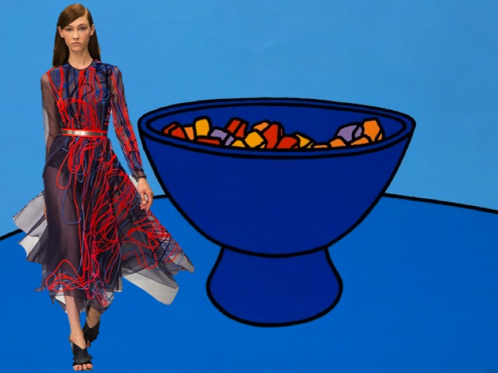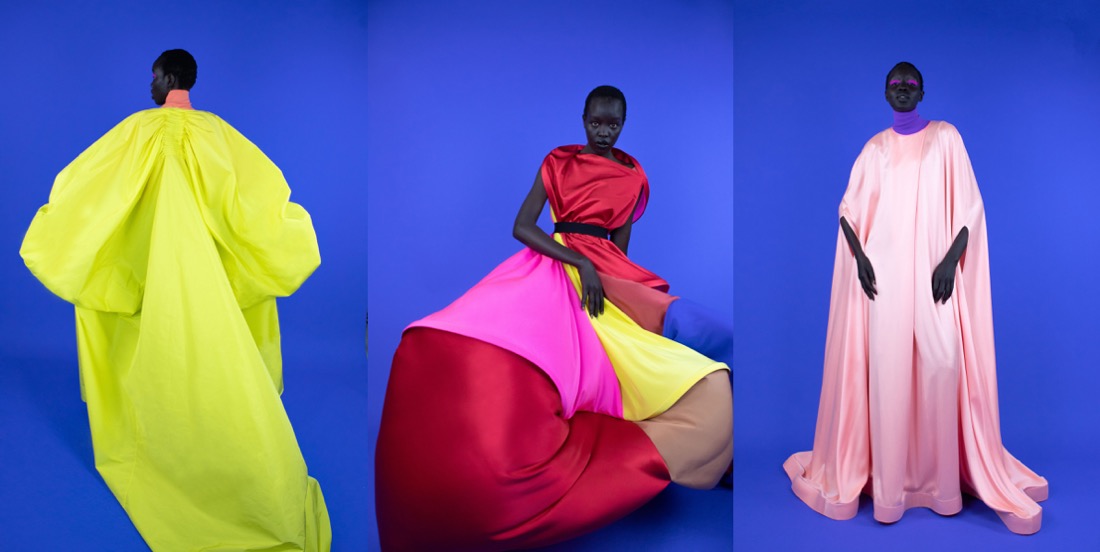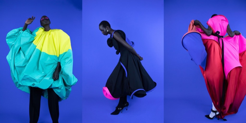 Roksanda‘s spring-summer 2022 collection is a release of pure endorphin! Roksanda Ilincic staged her fashion show at the Serpentine Pavilion, which was designed this year by Johannesburg-based practice Counterspace, directed by Sumayya Vally. Vally is the youngest architect ever to be commissioned for the project, and she sat front row. “I went to the Serpentine and I met Sumayya, who is a woman who loves and appreciates fashion – and she was super keen that I have my show there,” recalled Ilincic during a preview at her studio in East London. “I loved the space,” she said, referring to the structure, designed to reference London’s informal meeting spaces significant to migrant communities, from the Fazl Mosque to Mangrove, Notting Hill’s Caribbean restaurant. “I also loved that her color scheme was inspired by the many shades of London’s sky, from light pinks and grays through to black. It has a serenity and a calmness – it almost makes you want to meditate.” But there was no meditating here as Ilincic transformed the pavilion into a stage, enlisting a dance troupe to perform an emotive piece about the narratives of women and their relationships, tensions, and power struggles – the kind of human interactions that have been heightened after 18 months of on/off lockdown. She managed to whittle her 50-look collection down to just 16. “I think the pandemic has pushed me to be freer and to approach my show differently; it’s given me the guts to do that and perhaps be a little more nonconformist,” said Ilincic. “Also we have been so deprived of theater and performance of any kind, so I wanted to do something special.” Choreographed by Holly Blakey, the show was an immersive performance – it made the clothes really move. Her vividly colored voluminous silk dresses inflated with every rigorous movement, ballooning with air before gently collapsing like parachutes. Some were printed with extracts from a selection of Joan Didion’s work; others were painted in big, broad, “almost angry” brushstrokes. More artsy pieces, like a plasticized full skirt and mac, were created in fil coupe organza and then machine bonded, so what looked like paint scribbles were actually loose threads sandwiched. Other designs boasted boned hemlines and cuffs that curled, twisted, and bounced around the body. They seemed to defy all gravity, taking on a life of their own. The effect was beautifully chaotic. It had everything: drama, passion, and creativity in abundance. It was transfixing.