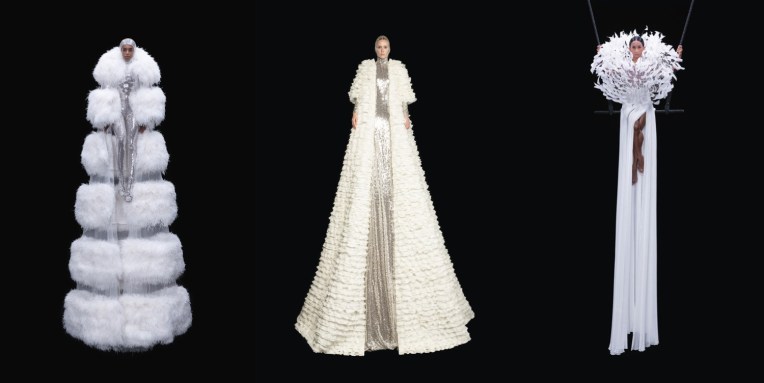 Kim Jones‘ second haute couture collection for Fendi was captured in an emotive film, which saw the likes of Kate Moss, Christy Turlington, Malgosia Bela and Amber Valletta gaze enigmatically into the camera as they wafted around a Roman theater set in dresses evocative of the stone and statues of the Eternal City. It was shot by Luca Guadagnino and scored by Max Richter. In the age of social media when big, beautiful dresses go viral, the direction Jones is setting for Fendi epitomizes a popular understanding of haute couture as something the eye can easily identify: bold ballroom silhouettes, sumptuous surface decoration and (very) famous faces. “It’s being optimistic about being able to socialize properly. I thought it was a nice moment to say that,” he said. Couture clients, Jones pointed out, “go to Fendi for something extravagant.” Two seasons into his tenure, his couture expression is manifesting itself in decoration and fabrication above all. His glamorous evening dresses serve as canvases for this finery, like the mother-of-pearl embellishment and recycled fur mosaic work that graced this collection. Watching it unfold, it feels like a formative process, as if all that intarsia and all those embroideries have been locked inside him for so long, waiting for the day when they could burst out into bona fide couture. Comparing to his heavy, over-worked January show, this one radiates with lightness and elegance that isn’t forced. To me, it felt like the mesmerising ambience of Rome. The film was inspired by Pasolini’s neorealistic Roman cinema, every architectural era of the city visible on its mock horizon. The fabrics and textures were informed by the buildings and pavements of Rome, some employed in statuesque lines that underscored the theme. Jones’s evolving exercise in the decorative aspects of haute couture made for eye-catching effects like the allover petal work of Moss’s oversized dress, or the marbling of Valletta’s swathing gown. Most compelling were the silhouettes that really took form, like the hypnotizing construction of a mosaic bolero jacket that resculpted the body through the volume-specific grammar of haute couture, or the dress worn by Mica Argañaraz, which demonstrated a similar idea in flou. “We had a lot more time to work on this one. We’ve actually had a full season. So, it’s a lot more worked into, and I think people will see a lot of difference in it. The people here, when they see what we’ve been doing, they can’t believe it’s the second one I’ve done. They say it’s a lifetime’s worth of understanding,” Jones concluded.