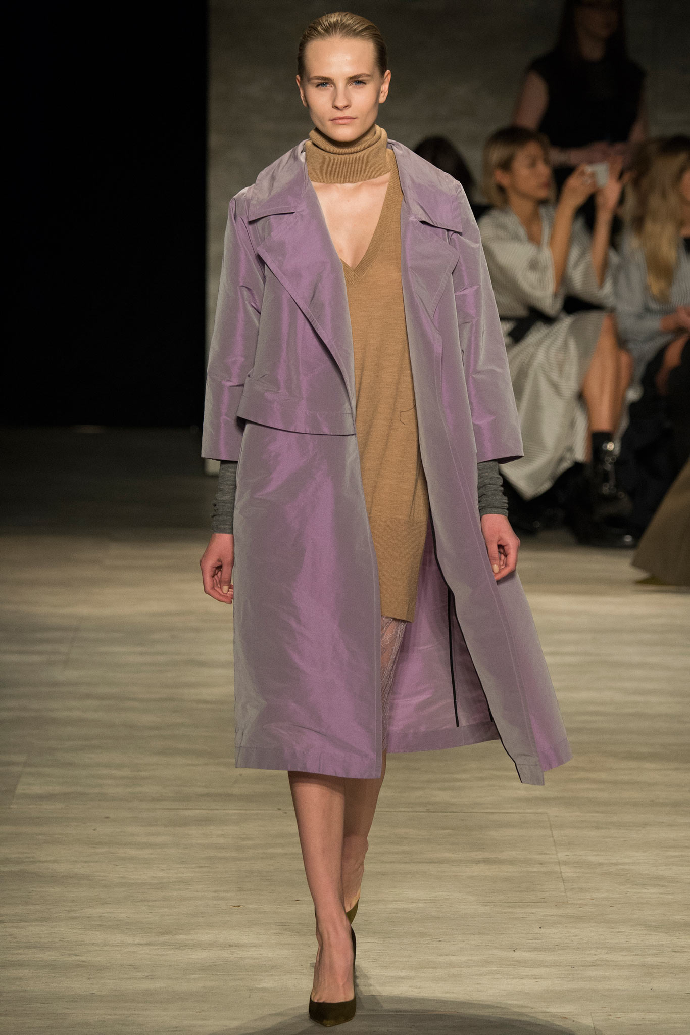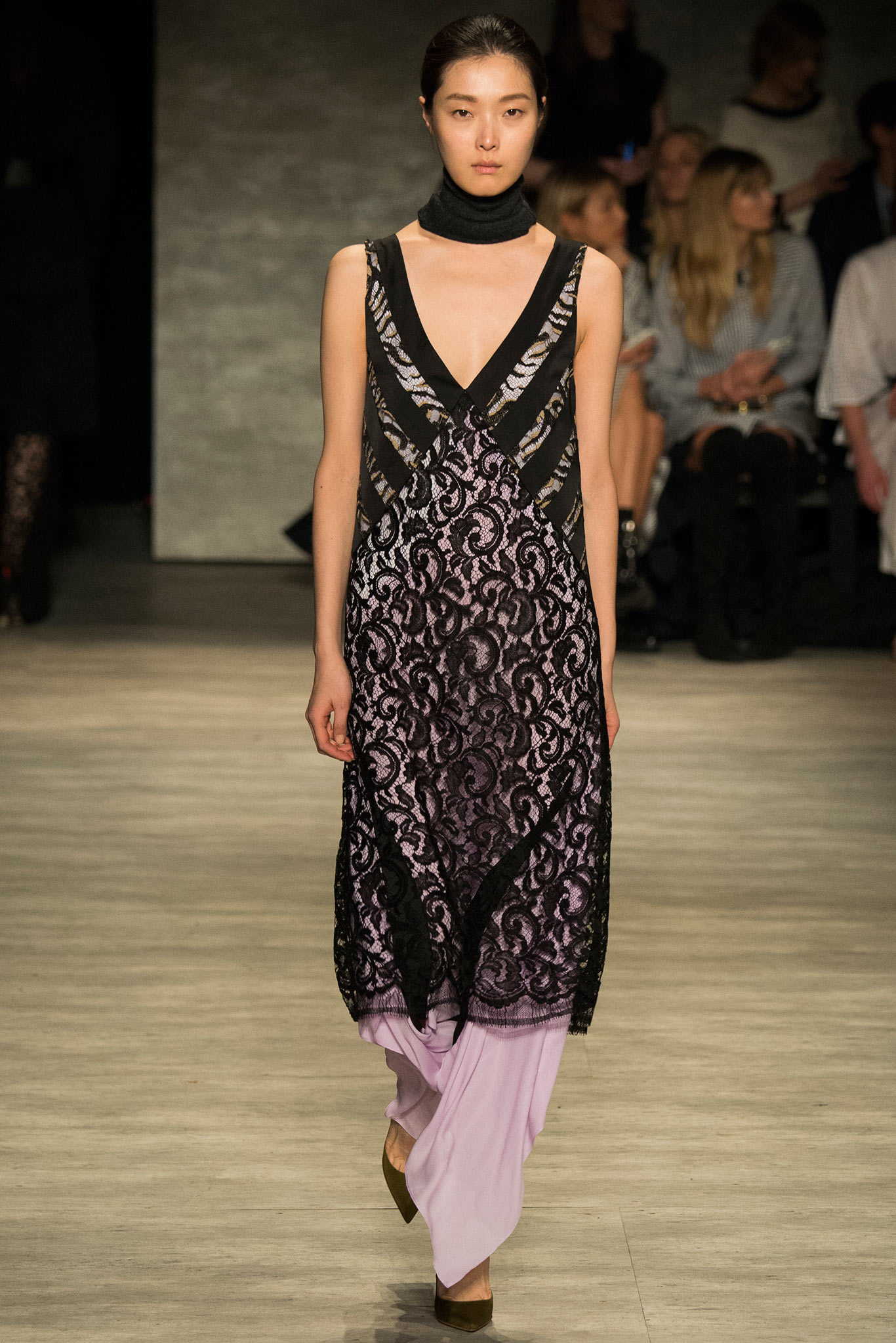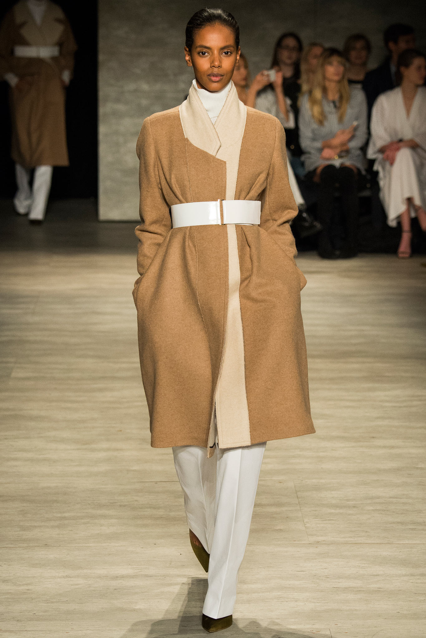 Another quintessential New York addition: the Marc Jacobs collaboration. Jacobs’s section riffed on his recent collections with block letter intarsias spelling out FendiRoma rather than his own logo on everything from tracksuits and trucker jackets and matching jeans to an oversize terry robe. The faux fur XXL hats, which we’ve seen the last time on his autumn-winter 2012 runway, wowed the audience just like they did a decade ago. “I called Marc up and asked him if he wanted to design a collection for Fendi. I haven’t been involved at all,” Jones explained the collab. “We worked side by side during fittings. We were doing ours, he was doing his. I’m looking very much at 1997, and I think Marc’s is fresh and now.” Jones was after more of a feeling. “I was thinking about when I was first coming to New York and we would go out clubbing,” he said. Hence the irreverent, high/low mix of sequins and utility jackets, or a shearling sherpa and a mini. He meant what he said about utility. Even beanies and gaiters came with built-in Baguettes, as did many of the garments, those shearling sherpas most temptingly. Surprisingly, it all felt very early Sex & The City and Patricia Field style. For the kicker, Linda Evangelista, who is the current face of Fendi, glided out, resplendent in an opera cape, with a sterling silver Baguette bag in the crook of her arm. Jacobs, who joined Jones and Venturini Fendi for a bow, encouraged everyone to stand up – not that the crowd needed any convincing.