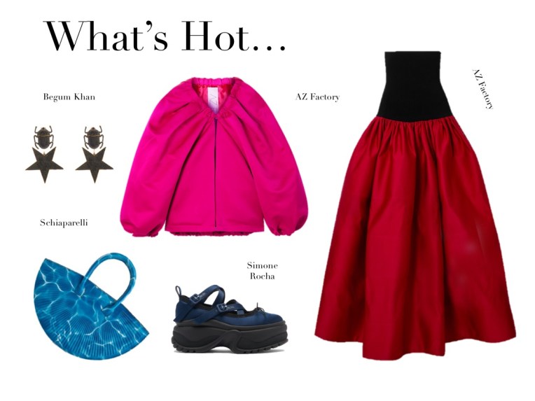 “In difficult times fashion is always outrageous“, Elsa Schiaparelli once said. Daniel Roseberry believes so as well – his latest, fabulously dramatic haute couture collection for Schiaparelli is the best proof for that. Visitors at the brand’s Place Vendôme salons are greeted by a lavish wedding gown. Typically, couture shows end with the bride, but Daniel Roseberry gave pride of place to the dress constructed from 70 meters of white cartridge pleated taffeta. “We’ve had so many requests from clients who come looking for this irreverent grandeur that we’ve been doing,” he said. Roseberry’s bride is not the shy, retiring type, but she is representative of what the designer described as the “new kind of prettiness” he was after this season. If this collection is as intense as his past outings, it’s a shade or two less irreverent. There are none of the molded leather six-pack abs corsets that were the defining looks of his last couture, for example. He came at prettiness in several different ways. Following on from that entrance-making bride is a salon devoted to embroidered jackets. These borrow as much from Lacroix and Jean Paul Gaultier as they do from Schiaparelli, with their curvaceous shapes, Versailles colors, and cone bra references. One black jacket blooms with pink silk roses, an ode to a collaboration between Schiap and Jean Cocteau circa 1937. Others are embellished with decades-old gold Schiaparelli threads that the embroiderer Lesage had saved in its stockpiles. All of them are trophies, perhaps especially the denim jacket that’s patch-worked from 11 pairs of used Levi’s sourced at a local vintage store – the very essence of haute friperie. Where this season’s jackets have a delicious propriety, a sculpted gold flower corset worn with a skirt barely clinging to the hips, and a scoop-front dress with a breastplate made of gold-dipped bronchi – the lungs being a locus of our attention in the pandemic – are more provocative. A silver bustier is accessorized by a fringed stole made from shredded black garbage bags, of all things. That’s couture heresy – and fabulously so. For the dessert, a cocktail dress punctuated by a shocking pink rose, a strapless black gown featuring a bust-line shaped like fiery orange lips with a matching train, and a voluminous infanta gown in a shade of lavender Roseberry said that he’s never used before. In his two years at Schiaparelli, he’s only doubled-down on the surreal glamour this historic house is known for. Turns out, he’s very good at pretty, too.
