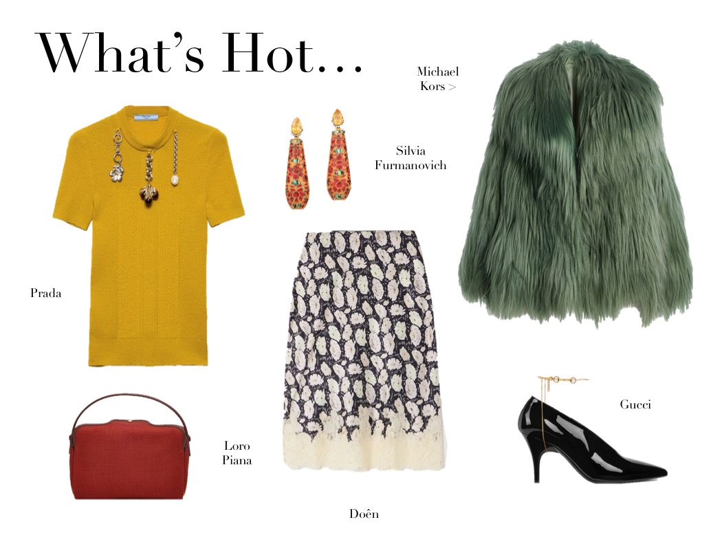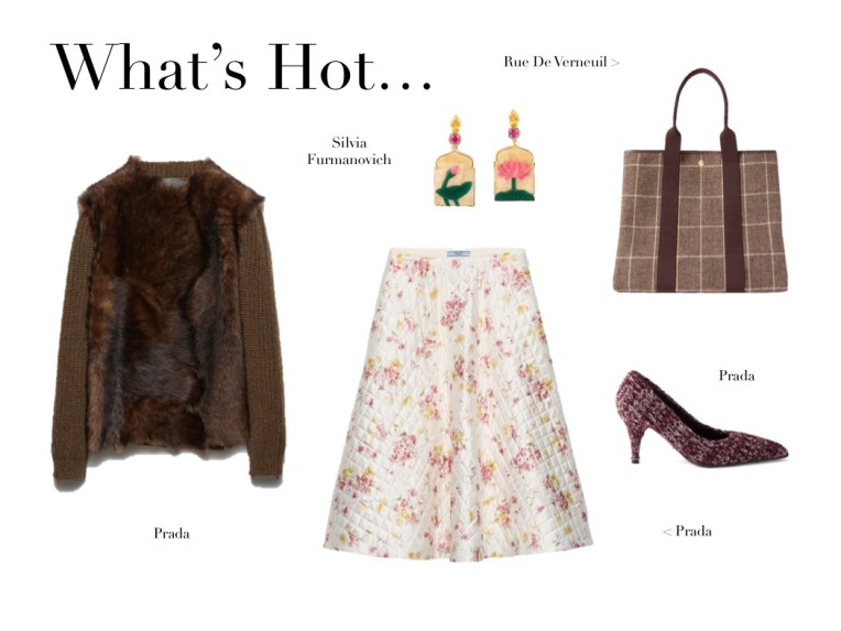 What’s Hot (7.9.25) September 7, 2025 | Design & Culture by Ed GET THE LOOK: Prada Chain Embroidered Wool Knit Short-Sleeve Sweater DÔEN Elowette Lace-trimmed Floral-print Silk-satin Skirt TOM FORD Belted Padded Shearling Jacket Loro Piana Happy Day Large Leather-trimmed Felt Tote Alaïa 90 Patent-leather Pumps
