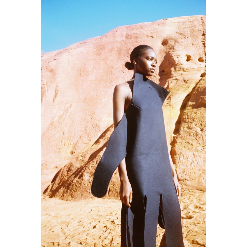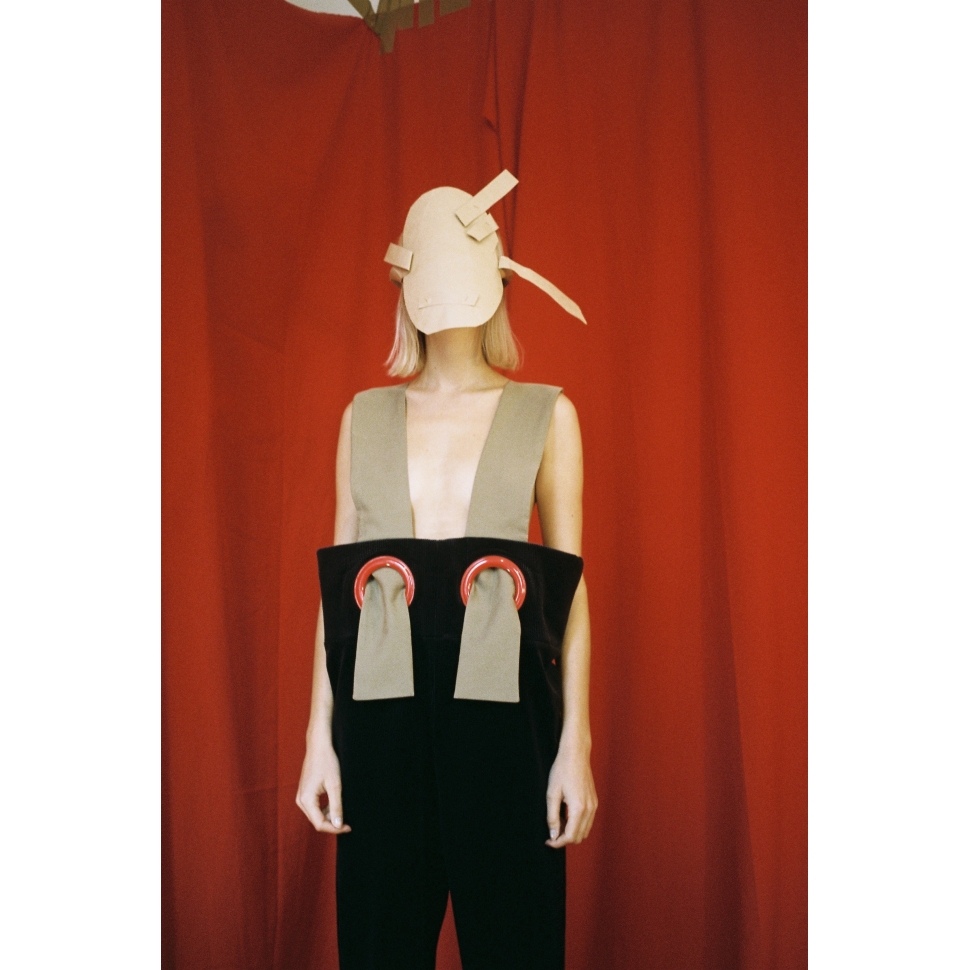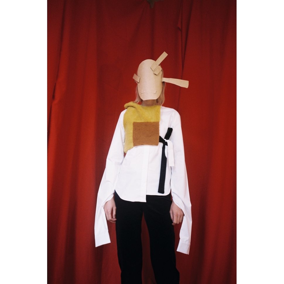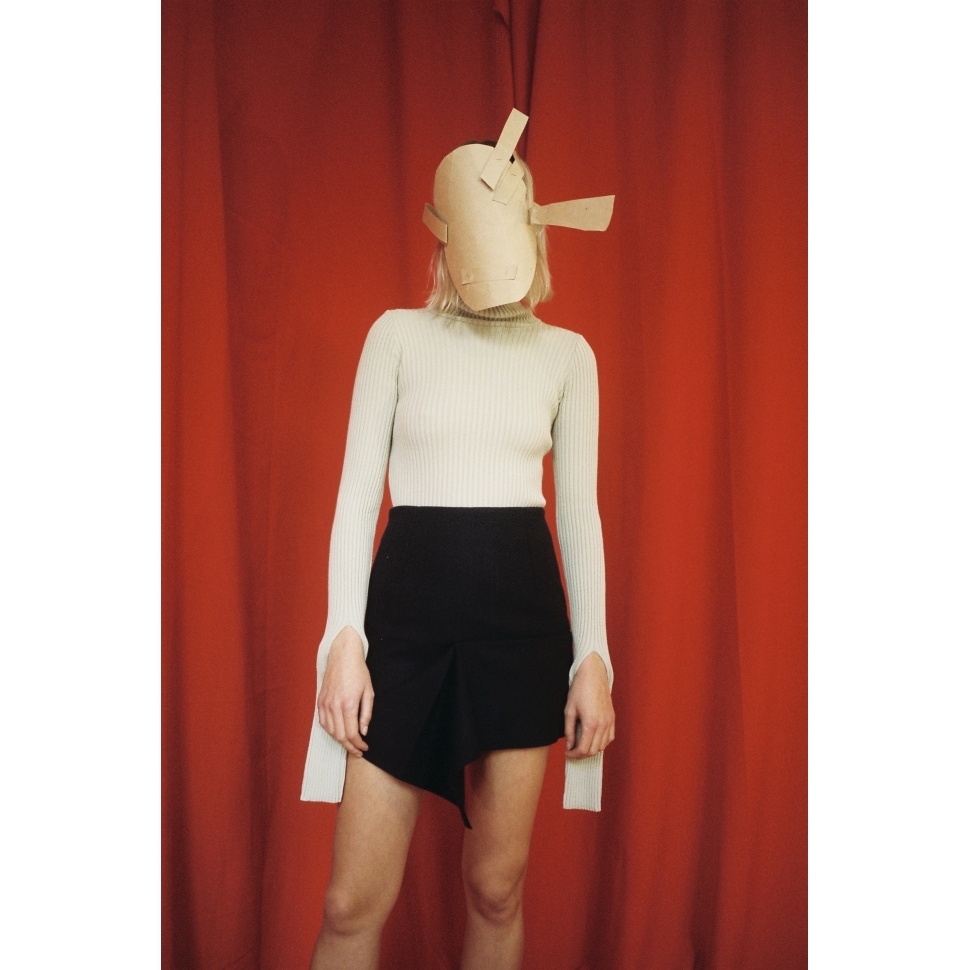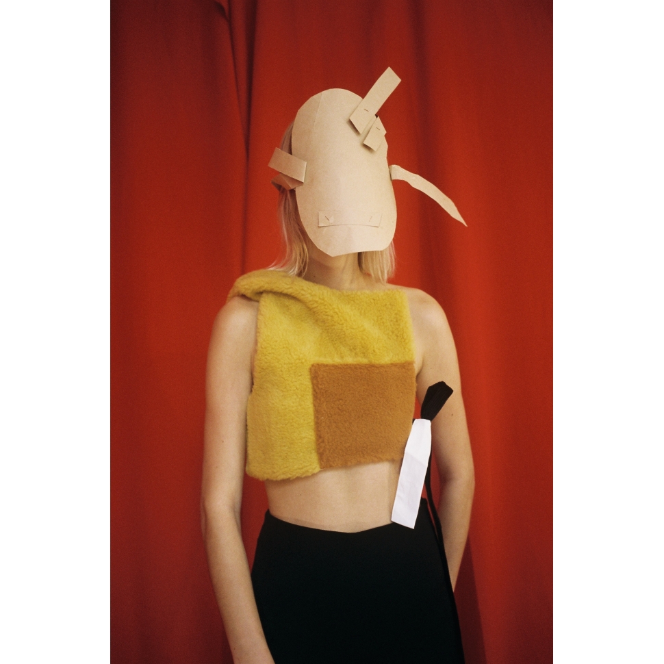 AW15 – Dadaistic silhouettes and primitively masked faces. Barefoot models. Naive nudity. Simone Porte Jacquemus continues his “childish” fashion journey, keeping his AW15 arty. With faces painted by Sebastien Bieniek, which felt very abstract and eerie at the same time, the collection provokes. Explaining that he wanted to capture some of the instinctual feel of being a child, the designer said: “I cut jackets like little kids will do—sometimes the cut is weird, there is just a half top. I like this randomness.” The whole collection, full of exaggeration and peculiar sex-appeal felt even more artistic and disturbing when you looked at the venue directed by Alex de Betak – dilapidated walls and kemping chairs felt on-point while accompanying the clothes. Escapism at its full strength.