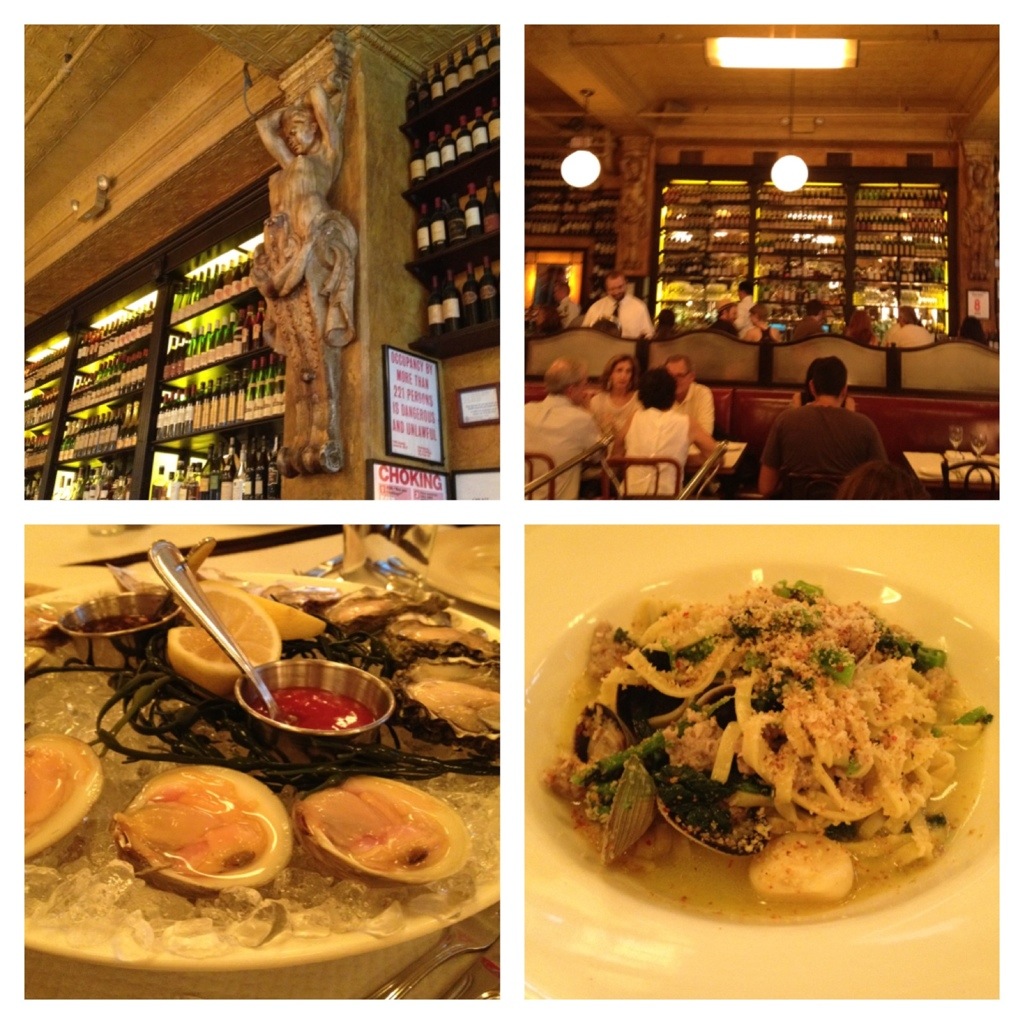 After lunch in museum we hurried on a taxi boat, to see all the most important bridges like Brooklyn. Awesome! It was a lot of fun. We saw whole Manhattan’s and New Jersey coasts. When we were walking out from the boat we found a tiny park where were standing… Yayoi Kusama benches! That temporary pieces of art, were standing there because of the Kusama exhibition in Whitney Museum. For the dinner we went to Balthazar on Spring Street on Soho. That was really poor. The homemade linguine were okay, red snaper (fish) was also okay but the some of the oysters were… Anorectic!!! That should have been the most fashionable restaurant in the city, but it was too loud and we felt like we were in the cheapest bistro in Paris. But the day was great.