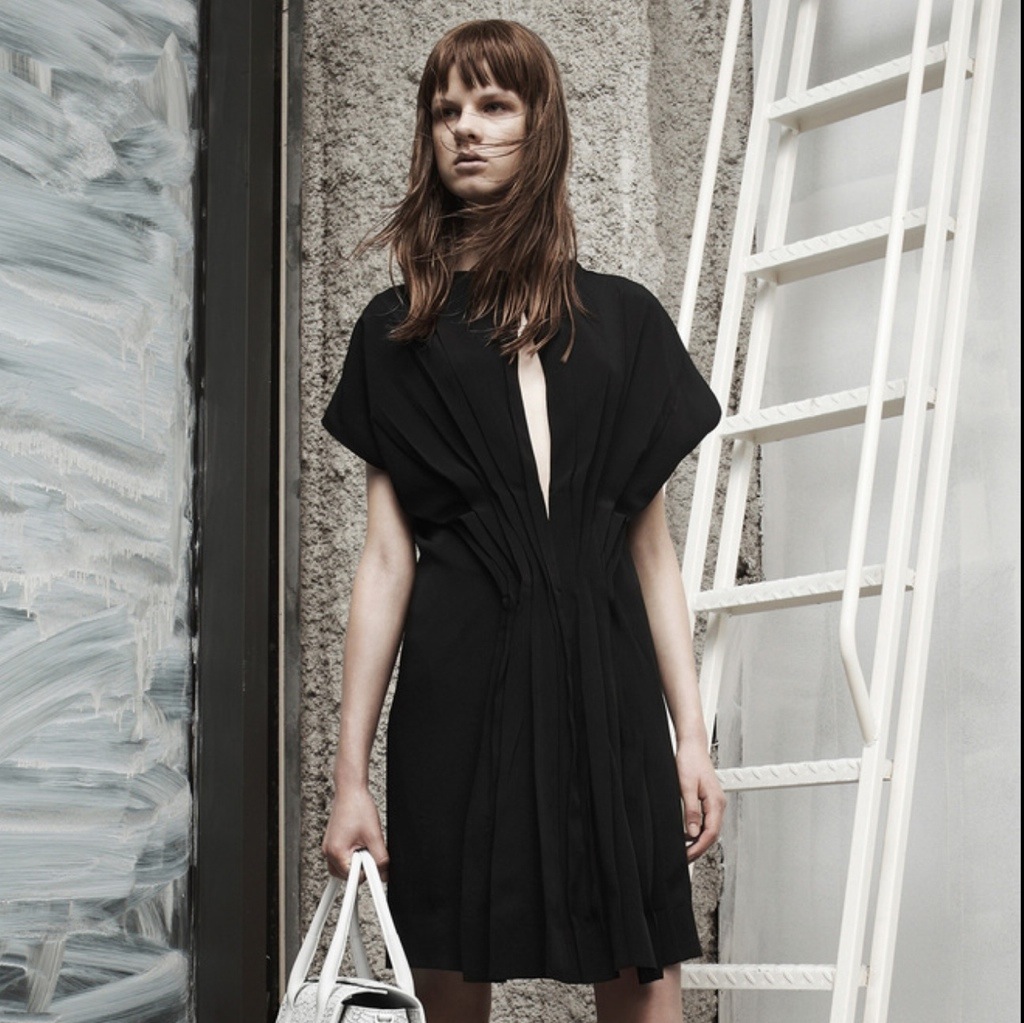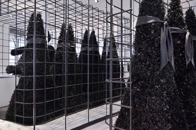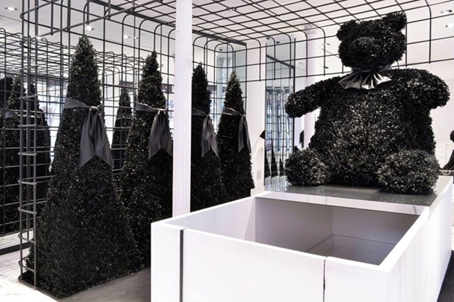 I know it’s a bit out of date since Christmas fun ends today, but… Still, the Christmas feeling is not appearing to go away. The Alexander Wang’s New York flagship store in SoHO just got a Festive Season makeover. No wonder in what colour- black. Black only. The colour that is best friend of Wang. Decorated with black Christmas trees and teddy bears, the boutique looks as always raw and cold, but… Special. By this occasion, I also had a peek at the Resort 2014 collection of Alexander’s line, and just noticed how great it is for New Year Eve! Of course, it’s great for people who prefer black & white elegance than fussy-flossy sequins. Simple, sexy white dresses and black masculine suits are seen in the collection, while the shoes look comfortable and pretty cool. Worn with some silver jewellery and leather hand-bags, the outfits seem to be very occasional, but at the same time good for other events in the upcoming year…. Will you choose black for your New Year Eve galore?