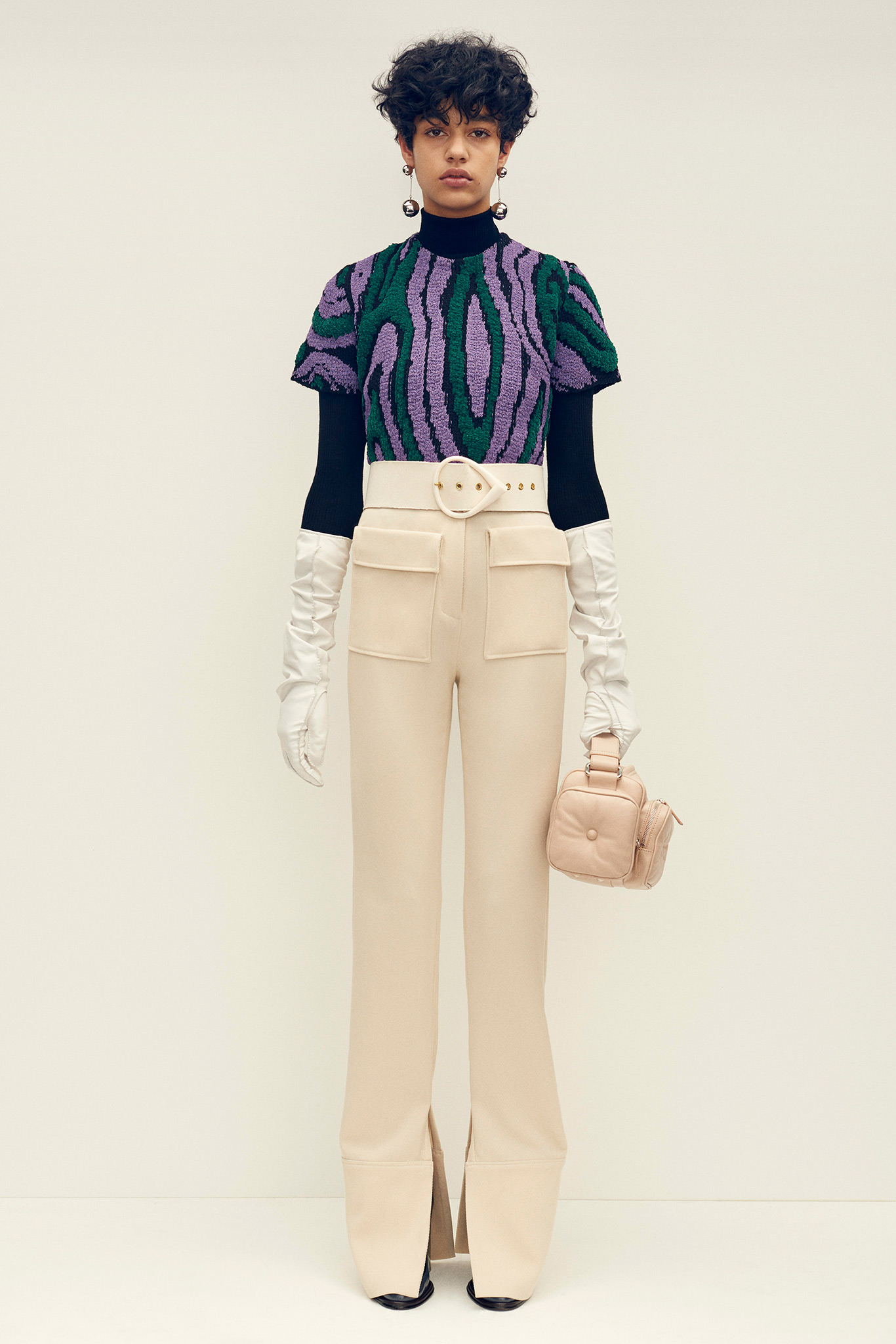 But coming back to the collection – “I’ve never been a designer designer,” he said. “I see it more as a look, what’s new right now.” And this—with its odd fabrics and peculiar proportions, cerebral and sensual—looks just that. New right now. But with faux cover which hides the old roots. The colours and textures combined with those curvy belts and emalia earrings makes me wonder. And I like when a collection makes me want to think, compare and research.