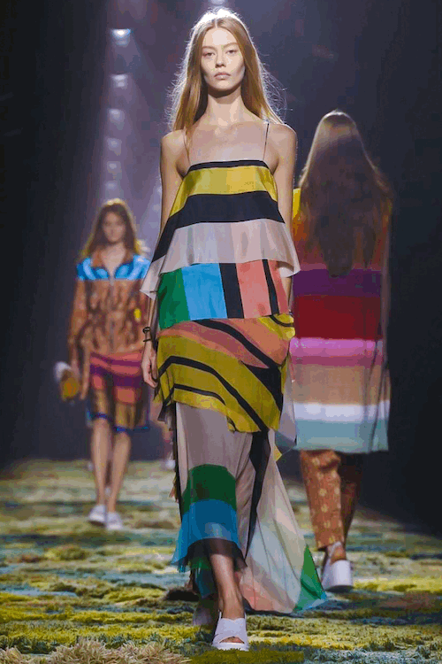 The carpet evokes moss and grass and is made of pure Patagonian wool. The setting for SS15 collection was inspired by “A Midsummer Night’s Dream” serenity and romantic mood – “As soon as I discovered Alexandra’s work I immediately understood she was the only one I could collaborate with to execute the idea” said the designer. Believe me – seeing this masterpiece in reality was a truly beautiful and one-of-a-kind experience.