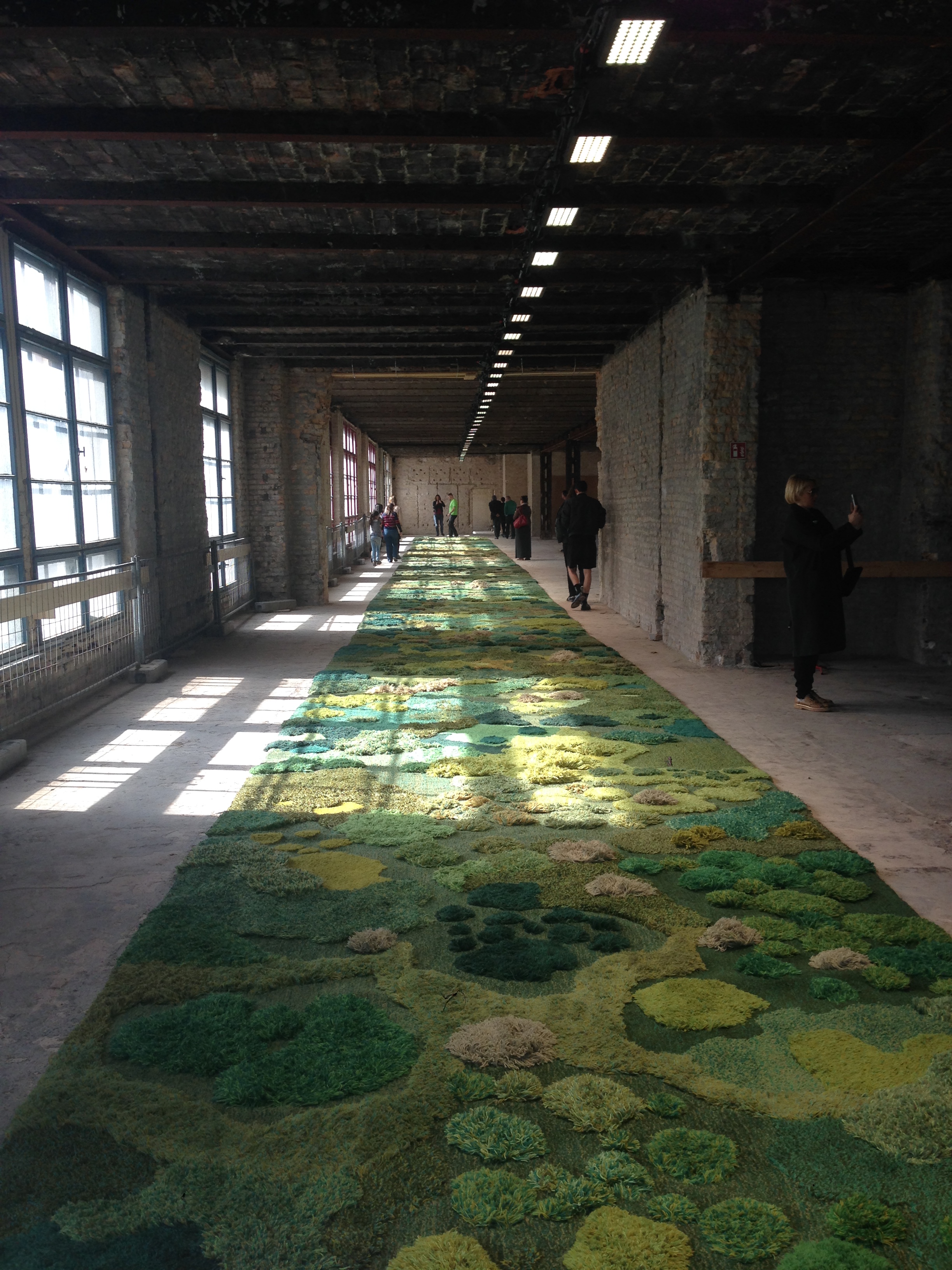 The long May weekend was a blast – the Gallery Weekend in Berlin as usually felt fun and inspiring! For this occasion, Andreas Murkudis presented an event which was a “must” for artisanal art lovers. A carpet artwork by Alexandra Kehayoglou, commissioned by Dries Van Noten for his SS15 fashion show, was there for three days, at the old Kaufhaus Hertzog. Alexandra, an Argentine artist, follows in the family tradition of her Greek grandparents who migrated to Argentina carrying with them this textile tradition of carpet making. She developed a new art work for Dries, a 48 metre long carpet. The carpet has been woven entirely by hand for over four weeks and arrived just in time for the show.