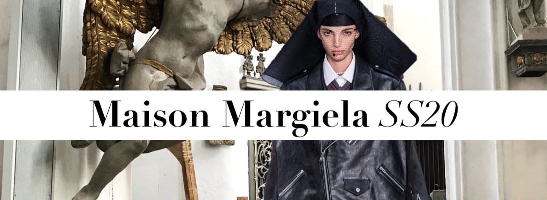 At Maison Margiela, John Galliano once again reflects on the digital age, with an exploration of hope, heroines and liberation in the face of “the chaotic noise of the social media debris“. Also, this was one of the most deep collections in a while coming under the Margiela label. Galliano is British, and Brexit is a topic that moves him personally. One of the slogans frequently voiced by the right is that British independence is “what we fought for in the war” – a false, trigger phrase which ignores the fact that the fight was against the forces of fascism in Europe. His spring-summer 2020 collection was a timely salute to the ordinary young men and women – the nurses and airmen, the army and navy boys – who stepped up to win the victory against Nazism in alliance with the French Resistance in occupied France. “Reverence for the lessons of history and what they taught us,” read a thought line in his press release. “Stories of hope, heroines, and liberation are forgotten as history draws ever closer to repetition.” This couldn’t be put together in a better way, really. First look: a navy cape, white hospital sleeves, and a gray serge pencil skirt. Second, a model in a black dress with a veiled hat trimmed with a feather, inspired by the the 1930s or 1940s (probably a nod to the Frenchwomen of the Resistance who went about their undercover work carrying secrets and explosives in their). Galliano as well turned to exploring uniform – of course in his non-chalant, experimental manner. Other than a traditional white mackintosh coat or eclectic jewellery made out of military stripes, pins and medals, there is plenty to be proud of in heritage, Galliano seemed to be saying in this collection, but that as well includes the right to freedom of self-expression, (inclusive of defending the LGBTQ+ rights that have been enshrined and respected by law since Europe has been united – well, mostly everywhere). However, please note that the collection wasn’t heavy with history; it wasn’t all serious and solemn. It was fun and dramatic; it was a celebration of male eroticism with a clubbing twist (have you seen Leon Dame’s finale walk?); it felt spontaneous, even though it wasn’t.