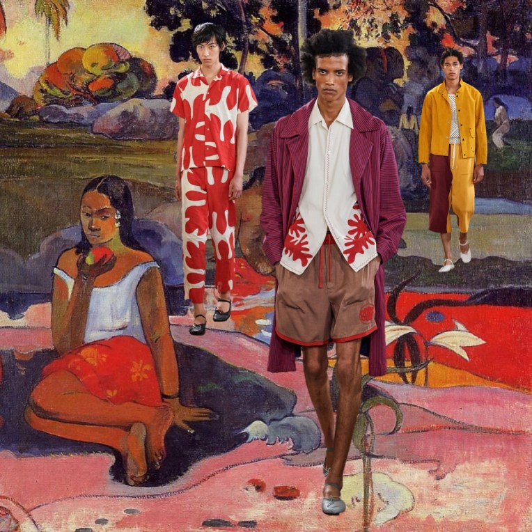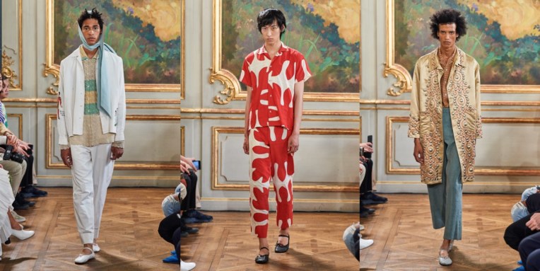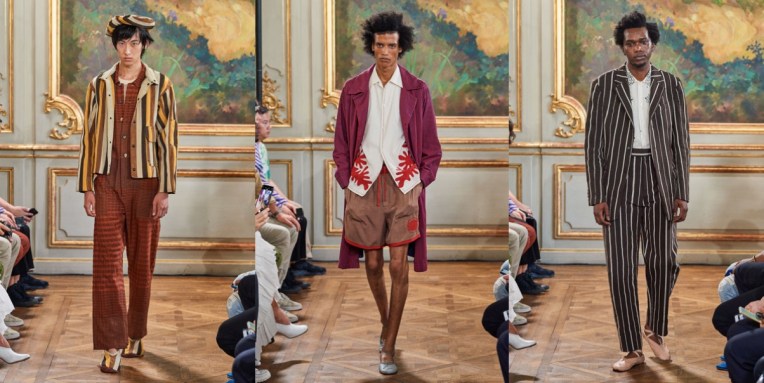 It’s Virgil Abloh‘s third season at men’s Louis Vuitton, and probably his best. For the spring-summer 2020 show, the brand held it in the real-life, cobbled streets and cafes of the Place Dauphine. The audience sat under trees on Louis Vuitton park benches or sipped a glass of champagne at outdoor tables. The view? A collection of easy, big shapes, flowing pants, real flowers stuck into harnesses and some really good outerwear. People like Dev Hynes of Blood Orange were part of the show’s casting, which made it even more intriguing. Of course, there were some similiarities to Craig Green’s garments in these wearable, geometric constructions that closed the show, but the collection’s main focus was on couture-level craftsmanship. Flower embroideries climbed up tulle coats, and a couple of immensely luxe iterations of hoodies, made from minutely pleated chiffon. “I’m learning, and taking much more of a couture approach”, he told the press after the show. It was a collection oozing with pure positivity, from the delicious pastel colour palette to the flower power elements.