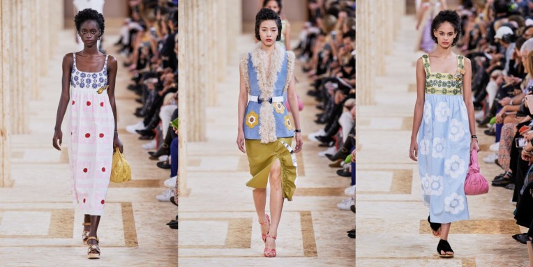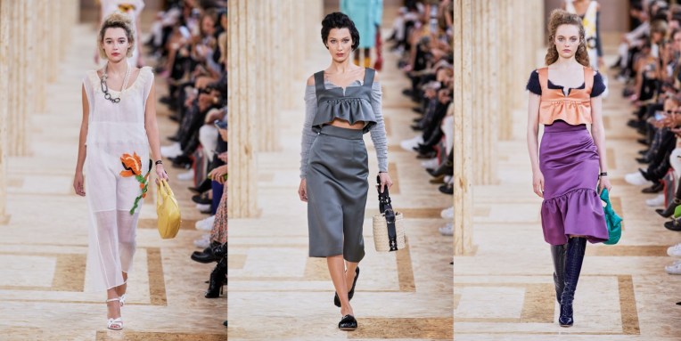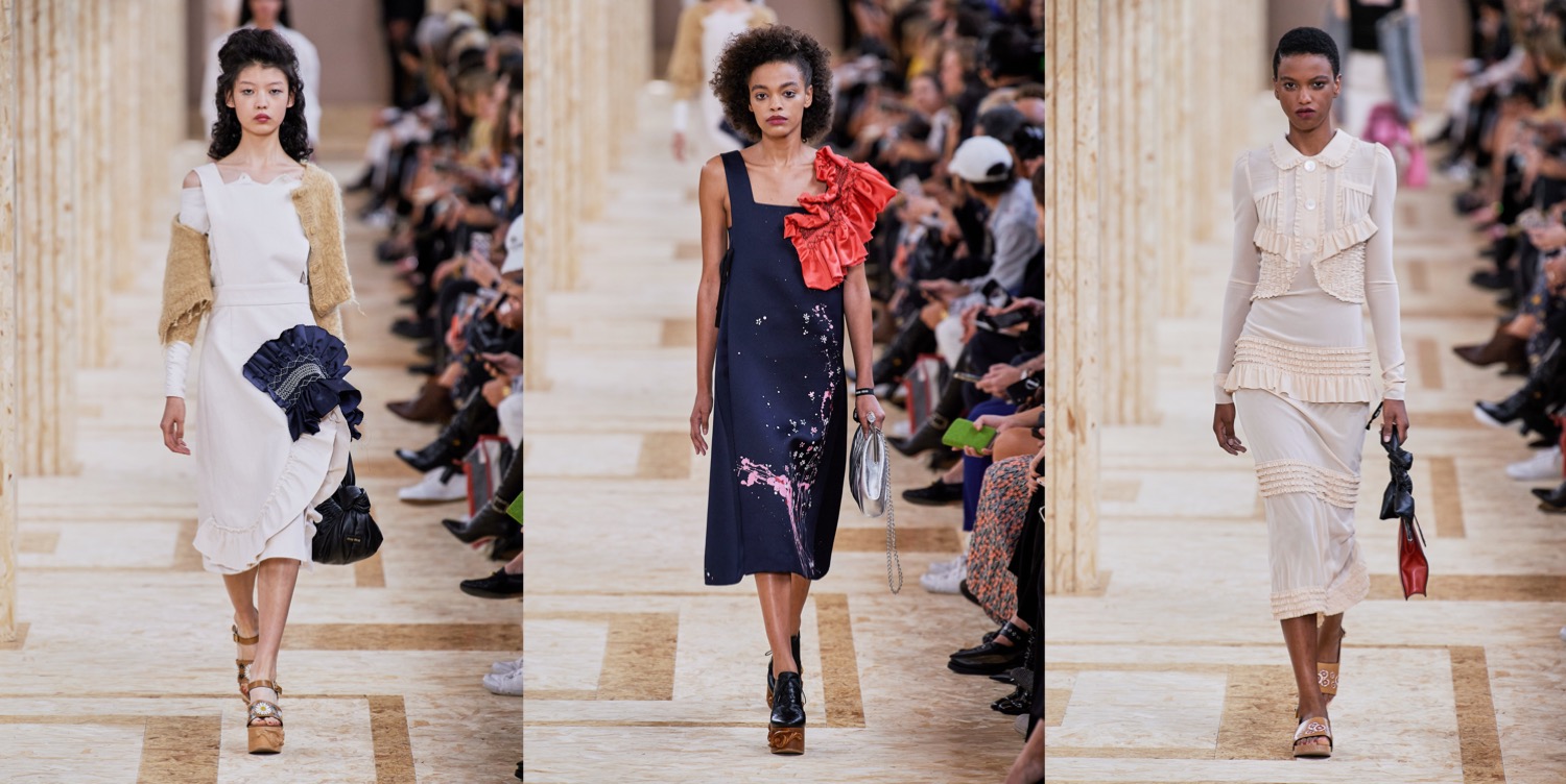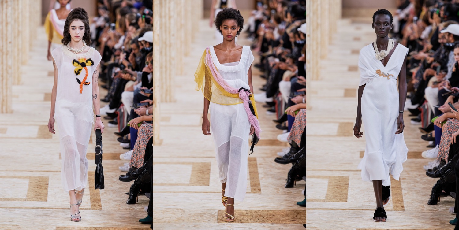 Co-founded by Molly Molloy, Kristin Forss and Lucinda Chambers, Colville – the London/Milan-based brand – is independent, off-kilter and too cool for the traditional fashion industry. Colville is the creative encounter between three different minds and three personal points of view. The trio have worked together at Marni, while Chambers was Consuelo Castiglioni’s longtime stylist and is famous for her sense for eclectic layering. Their spring-summer 2020 collection involved working collaboratively with a Colombian women’s group on charming woven bags, and they’re sourcing vintage silk scarves and old shell jackets from the ’90s and turning them into graceful dresses and sleeved shrugs. Social responsibility and upcycling are buzzwords that fashion companies use as their marketing ploy. But for Colville, this isn’t a trend. Molloy, Forss, and Chambers are really, truly close to the product. Those are clothes to be worn, cherished, mixed and matched. Clothes that are bold and brave, considered and careful, sensitive and detailed. Colville designer have a soft point for bold floral prints and off-kilter silhouettes (if you worked with Castiglioni, that’s an inheritable trait), like an upside-down shirt whose sleeves drape below the hips and a trompe l’oeil skirt that looks like a folded-over dress. The collection as well features amazing raincoats made from boat sails. Keep this brand on your radar next season, if you’re looking for truly sustainable, bold fashion.