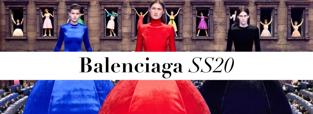 Balenciaga‘s spring-summer 2020 collection was really something. It’s quite clear that since Demna Gvasalia departed from Vetements, his focus is solely directed on the Parisian maison. For me, his latest line-up was as incredible as his debut collection – it proved again that his take on ready-to-wear is truly visionary. The collection was raw, properly odd, ironic and real (all the models come from different walks of life: there were nurses, actresses, super-models, lawyers, gallerists, engineers, etc.). But so, so desirable! Lets start from the beginning. He set the collection in a political arena – a faux “Balenciaga parliament or assembly,” which he’d convened to investigate the subject of “power dressing and fashion uniforms.” First looks: senior delegates in corporate tailoring. On their breast pockets were embroidered badges, two discs bisected with a Balenciaga logo (very Mastercard). Then came what Gvasalia called ‘the campaign dresses’. “We looked at pictures of women politicians, of what they wear campaigning. We took this type of tailored daywear dress and tried to make it cool – not an easy challenge, to be honest,” he said. His solution was to “make them more boxy and cocoon-y, which is quite Balenciaga. So many body types can wear it. Democratic and easy-to-wear volumes.” Later, he sent down a line-up of over-sized, turtleneck frocks in logos, perfume bottles and sneakers prints, and long-sleeved t-shirts with cliche slogans you see in cheesy gift shops (like ’18+’ or ‘Top Model\). In his latest interview with Jo Ellison for How To Spend It, he told the critic that not doing simple, commercial stuff is simply not honest at a brand like Balenciaga. And he’s right. Next: turtle duvet jackets (their construction is amazing – it’s modern day Cristóbal Balenciaga sort of thinking); hybrid, velvet garments that in front look like dresses, but in the back appear to have pants; coats, in faux fur or bold colours, with exaggerated shoulders; XXL, black, widow dresses (worn by Nadja Auermann and Renata Litvinova). If it couldn’t get any more eclectic, here’s the best part. The eveningwear, which instantly became the most memorable / meme moment of Paris Fashion Week. Specifically, crinoline dresses (two in lurex and with a huge, doll-like bow in the back, and three identical velvet masterpieces in different colours). “Ballroom dresses go back to the beginning of Balenciaga, when Cristóbal started in Spain. It was mostly this type of silhouette he did, from Spanish painting,” Gvasalia observed. “But we wanted to make sure they were wearable. If you take out the crinoline, you have a sort of goth dress.” True, there’s something that makes you feel uncomfortable while looking at the collection: maybe it’s the extreme blue of the venue? The prosthetics used as part of models’ make-up? The chilling soundtrack created by Demna’s boyfriend, Loik Gomez? Still, I can’t help but love it. Good fashion makes you want something for a moment. Great fashion makes you feel something and think about it for a couple of days.