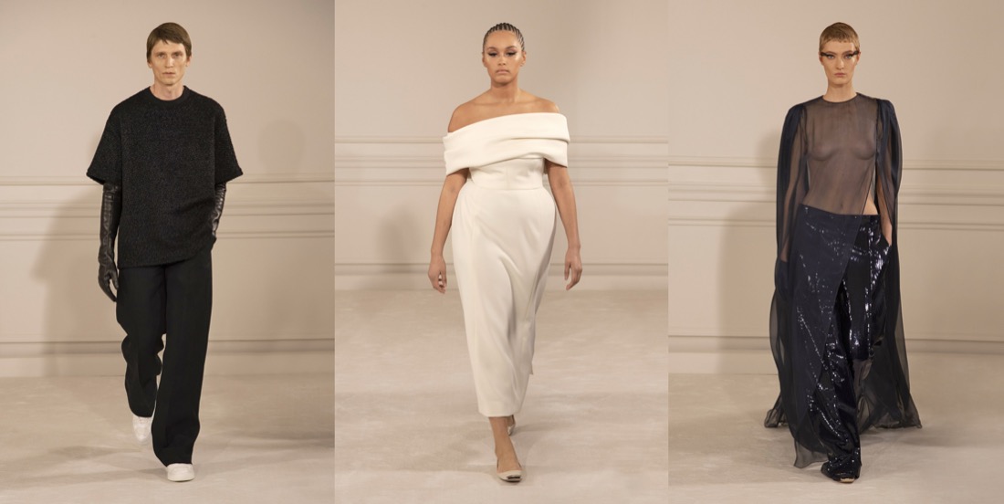 Y/Project’s Glenn Martens unveiled his vision of Jean Paul Gaultier haute couture—the second designer to do so, after Chitose Abe of Sacai last season – and it appeared to be a heavenly match. What makes this collection so magical, so right and so much fun? It’s an escapist exercise in what you can do when you’re let loose in the wunderateliers that are the Gaultier workrooms. Plus, as we all well know, Martens knows how to make a brilliant and inventive silhouette. One of the looks he was furiously working on is a Breton marinière which has been turned into a dress and then hand-embroidered to ripple 3D-style with hundreds of faux coral fronds. The sailor stripes are pure Gaultier, yet the twists to this dress – the folded-over shoulder line, the knit panel which sinuously and unexpectedly juts out from the left hip – are pure Martens at Y/Project. “I am only doing this for one season, so it’s not like I have to envision a whole new future for the house; that’s a very different exercise,” Martens said. “This is a celebration of Gaultier. I’ve stayed close to the woman Jean Paul created in the past—pure diva goddess beauty, hips, whatever, all that drama he loved. I’m building on that through what I think of his iconic Gaultier moments. This marinière…it’s so him, but I completely fucked it up with all the fake coral spikes. I’m reinventing those iconic moments in my own way.” That’s what makes Martens’s version of Gaultier couture fly: the acknowledgement that it can’t be a retread of the past glories of one of fashion’s greatest designers, but instead honor what went before and incorporate the best of yourself. It is not C as in collaboration ( a word which is looking increasingly passé) but C as in conversation, a constant state of respectfully going back and forth between incoming designer and the heritage of the house.