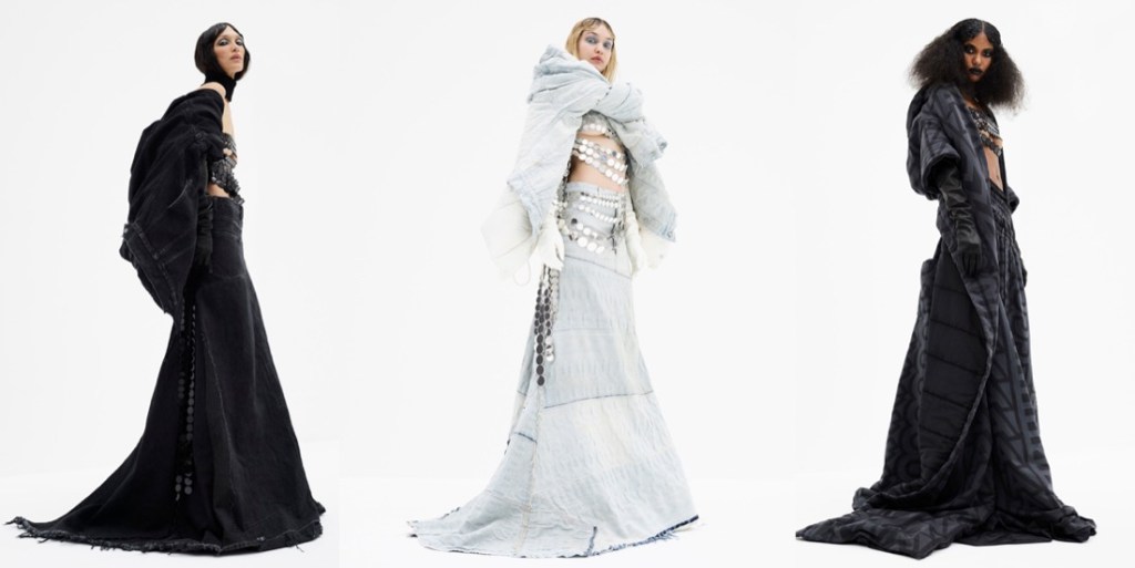 New York Fashion Week may officially be over, but that didn’t stop one of it most beloved showmen from unveiling a surprise new collection on Instagram. What’s New York’s fashion scene without Marc Jacobs? The 10 look line-up (which will be available exclusively at Bergdorfs), is essentially a glamorous reworking of Marc’s remarkable autumn-winter 2021, with their grand silhouettes slashed into new skin-baring forms, cargo pants transformed into sweeping statement skirts, and brilliant paillette embellishments wrapped into something stunningly new. The collection came up quite spontaneously. As Jacobs avoided the phygital fashion and virtual shows which largely defined this industry through 2020 and 2021, he instead waited until he had the potential of a live runway to create a collection for. “We were like, ‘we’re not showing until we can do a show the way we show,’” Marc told I-D. “But then, this time, me and Joseph [Carter, from his design team] and Alastair (McKimm, Marc’s collaborator) decided that we were going to make some clothes. And we were going to photograph them.” In result, this new collection appears exceptionally impactful, something of a deeply desirable dystopian fantasy. “We played with the clothes that we made before in order to make other, new clothes,” he explained. So paillette pieces were slashed and wrapped into new apparitions, while a denim jacket draped on the body to become a fabulous sculpted stole. Couture-level deconstruction, something the designer is obsessed with lately. “There was this word that kept going around early on in the process: elevate,” Marc laughed. “‘It has to be elevated, it has to be elevated.’ I looked it up in the dictionary – and to elevate has two definitions. Firstly: to raise or lift something up to a higher position, and secondly: to raise to a more important or impressive level.” He managed to tap into both meanings with this mind-blowing offering, as we can see.