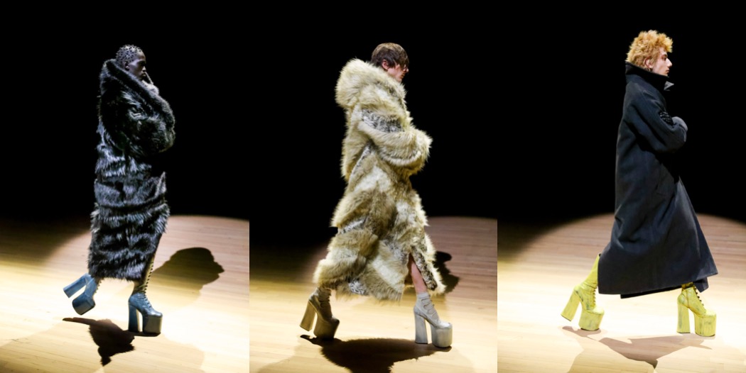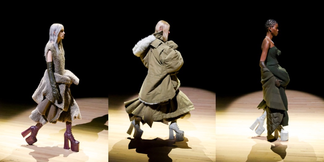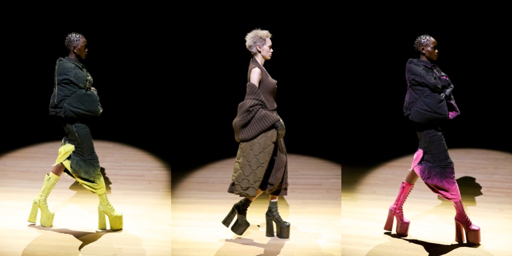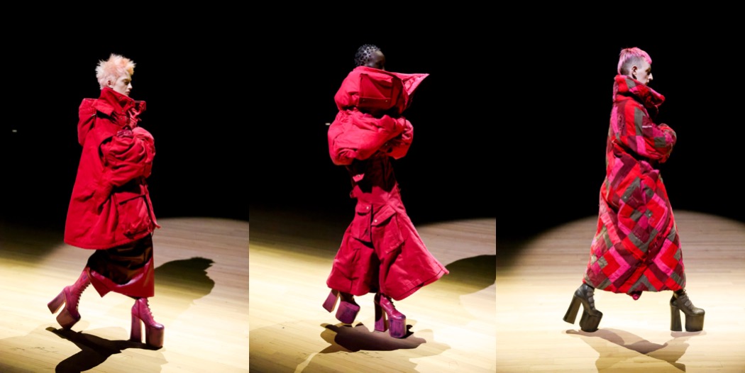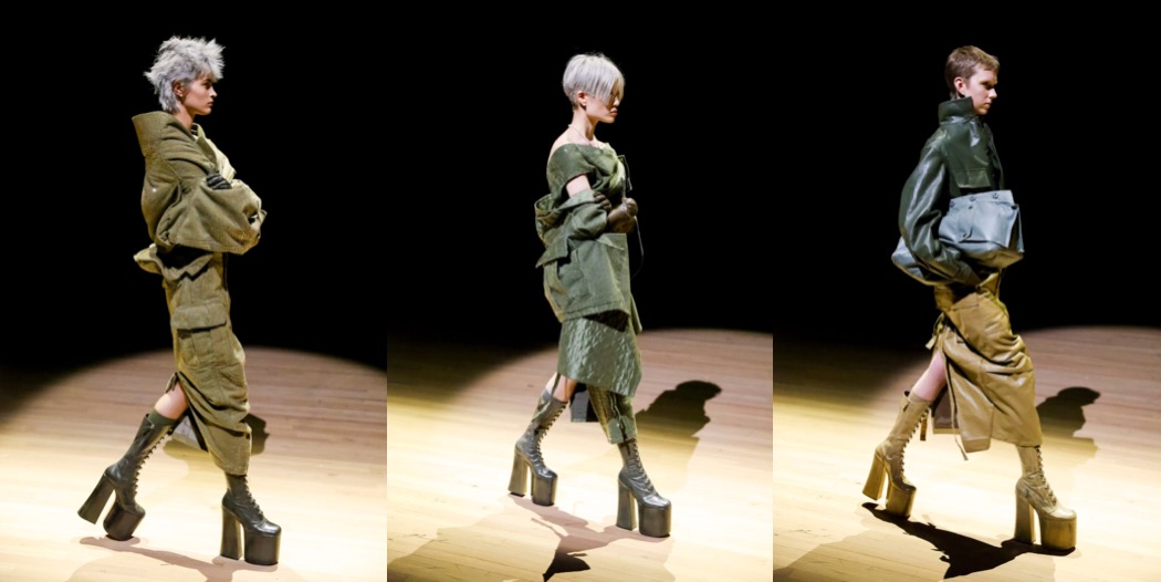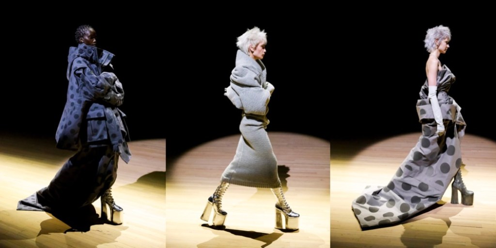 Marc Jacobs held his latest fashion show in the Park Avenue Armony, a week before New York Fashion Week officially begins. Even if the king of New York’s fashion scene doesn’t return to the event, the entire outing felt very New York. The giant room was pitch dark and almost empty, save for a single row of chairs and spotlights illuminating the space in front of them. A solo violinist, Jennifer Koh, played a portion of Philip Glass’s “Einstein on the Beach.” Jacobs gave the collection a name – “Heroes” – and included a Vivienne Westwood quote in his show notes more earnest than irreverent: “Fashion is life-enhancing, and I think it’s a lovely, generous thing to do for other people.” Westwood died in December at 81, and when she passed Jacobs posted a black-and-white photo of the legendary designer as a young woman. In it, she wears her bleached blond hair in spikes and a button-down stenciled with the words: “Be reasonable, demand the impossible.” At the time, Jacobs wrote that he was heartbroken, saying, “I continue to learn from your words, and all of your extraordinary creations.” This collection was an emotionally charged homage to the “godmother of punk,” from the top of the models’ peroxide wigs to the bottom of their platform shoes. Naomi Campbell, you’ll remember, famously fell in her platforms at Westwood’s autumn 1993 show. But Jacobs has learned much more than that from the late designer. The “tit tops” of Westwood’s Pirate collection circa 1981, in which she twisted t-shirt fabric into nipples, were reinterpreted as casual knit leotards and nipped and tucked sheath dresses. Here, the romantic silhouettes that Westwood lifted from old master paintings, with their bustles and bustiers, got a dressing down in military surplus, heavy on the cargo pockets. Jacobs recreated her signature volumes by turning a shirt into a skirt and tying its sleeves in the back, or by dressing models in upside-down jackets, hems dramatically framing their faces. A few of the models walked past with their arms crossed, pantomiming Westwood’s defiant audacity. Long-line coats with the geometric patchworks of quilts may not be of direct lineage, but their DIY-ness chimes with Westwood’s punk ethos. They’re special pieces, not precious because of the materials Jacobs used – they actually looked quite humble – but because of their remarkable handwork. Tinged with sadness, but also with moving, creative expression, this collection proves again that no one does it like Marc.