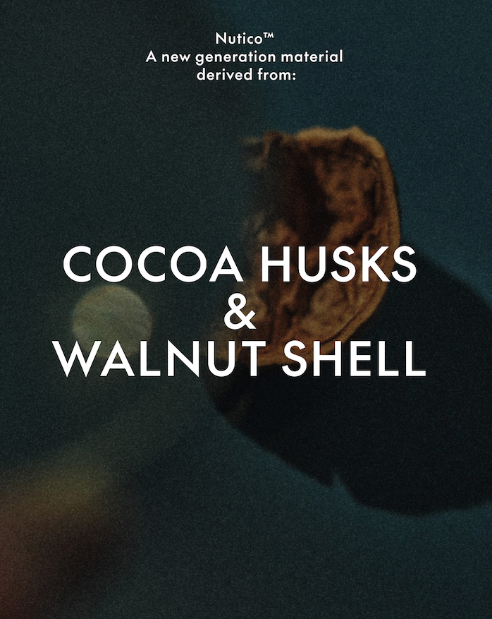 Born from years of trial, error, and a failed experiment involving apples (turns out apple leather ages faster than you’d want), Nutico is the result of thinking differently about waste. Instead of synthetic binders or water-intensive processes, Nutico is made with zero water, no polyurethane, and no PVC – just food waste, organic cotton, and some very smart chemistry.