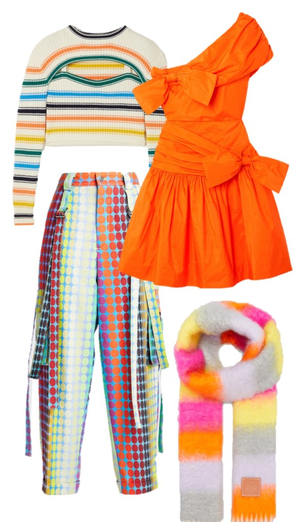Rosie Assoulin “Thousand-in-one-ways” convertiblestriped merino wool-blend sweater, Molly Goddard taffeta dress, Christopher John Rogers cargo pants