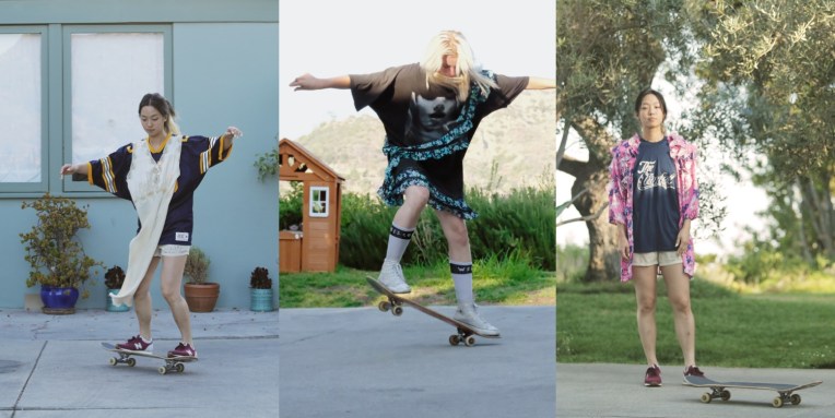 I discovered Imitation of Christ a year ago, and when I’ve shared some archive images from Tara Subkoff‘s early 2000s shows on my Instagram stories, many replied to me that they’ve never heard of the brand and that it’s just so, so amazing. I was in awe, too. Each of the label’s collections was presented as a sort of ironic performance: a funeral show; a red carpet line-up opened by Chloe Sevigny; a collection solely dedicated to denim, with Scarlett Johansson as a Marilyn-Monroe-look-alike model. Then, the brand seemed to go into a hiatus, then it came back for a moment and disappeared again. And then, to my surprise, somebody posted on Instagram that Imitation of Christ is back this summer with a guerilla couture performance in Los Angeles. And now, here we are with Subkoff’s spring-summer 2021 collection – in a moment that one might never suggest for a brand that’s planning its “big” come-back. But Imitation of Christ isn’t a regular brand, so the circumstances just couldn’t be more exciting. Twenty years after the brand’s first show on the escalators in a subway station, this season’s performances (there were two, one in Los Angeles, one in New York, not identical, but each consisting of a capella singers accompanied) are equally inventive. And, while all of this is going on, The RealReal, from which Subkoff sourced some of her pieces, will offer the spring collection for sale in see-now, buy-now fashion, with part of the proceeds going to Greta Thunberg’s nonprofit Fridays for Future. Upcycling or “resurrecting” existing pieces is the central tenet of Imitation of Christ, and it means that every piece is unique. Collection themes do emerge, however, and are crystallized by the way they are presented. Skateboarding is the organizing principle this time around, and Subkoff describes the clothes as “glamorous activewear” – say, a vintage slip attached to the front of a sports jersey. Some of it could have been hand-sewn by the bored, home-imprisoned Lisbon sisters from Sofia Coppola’s The Virgin Suicides, by the way. Subkoff became acquainted with skateboarding girls when she was feeling a bit blue. Struggling to find inspiration, the designer started visiting local skateboard parks, which she found to be “heavy on the dude feeling” until she noticed the young female skaters trying to master tricks, falling down, and starting over again. In their determination Subkoff says she found a “good metaphor for what it feels like, to me, to be female in this world in some capacity. Like you just have to keep doing it, until you do it better than the men. And then you have respect in some way.” Looking forward to more of Imitation of Christ, as it’s one of the most enigmatic and intriguing labels in New York.