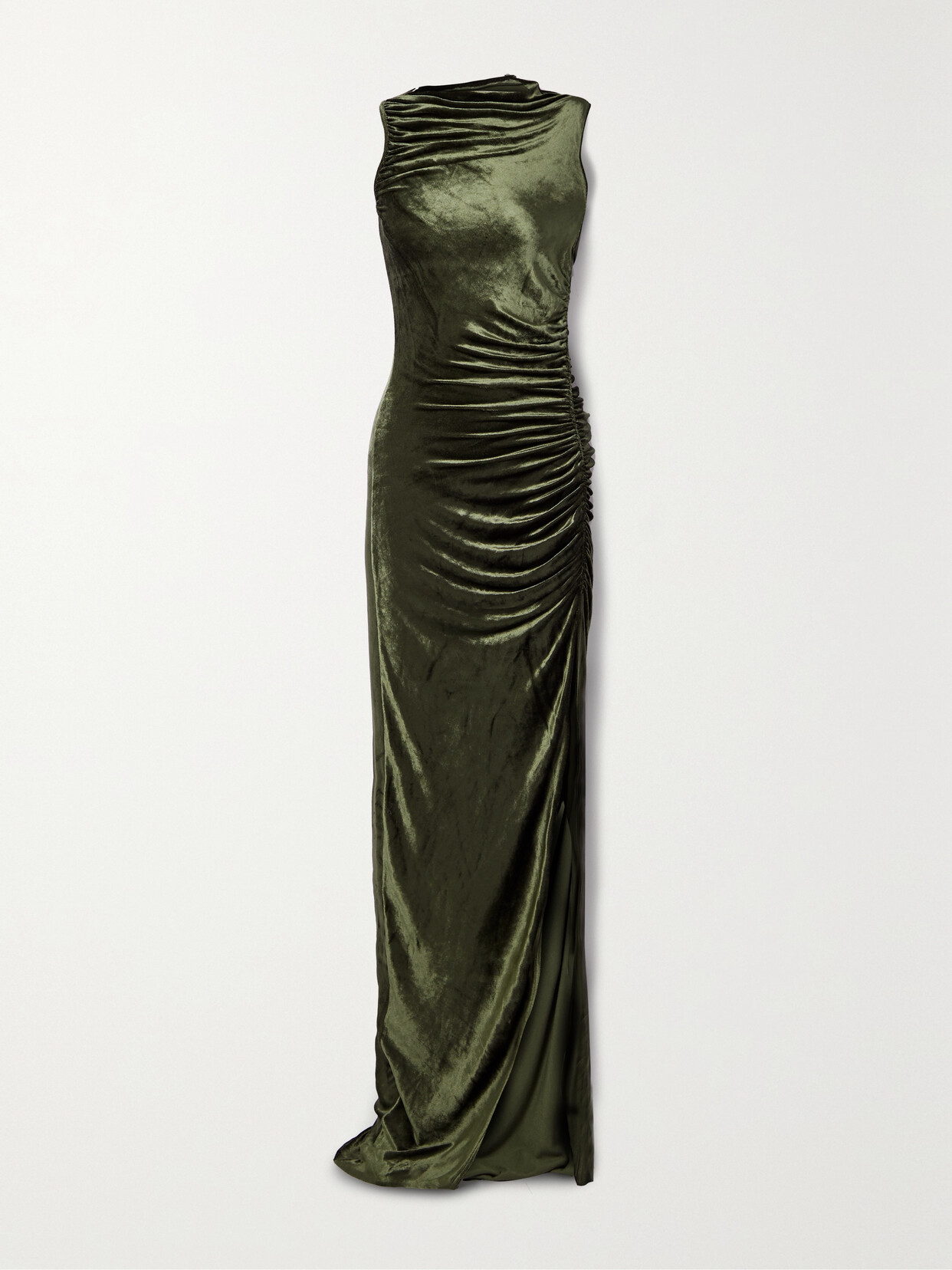 Saloni Satin-trimmed Velvet Wide-leg Pants