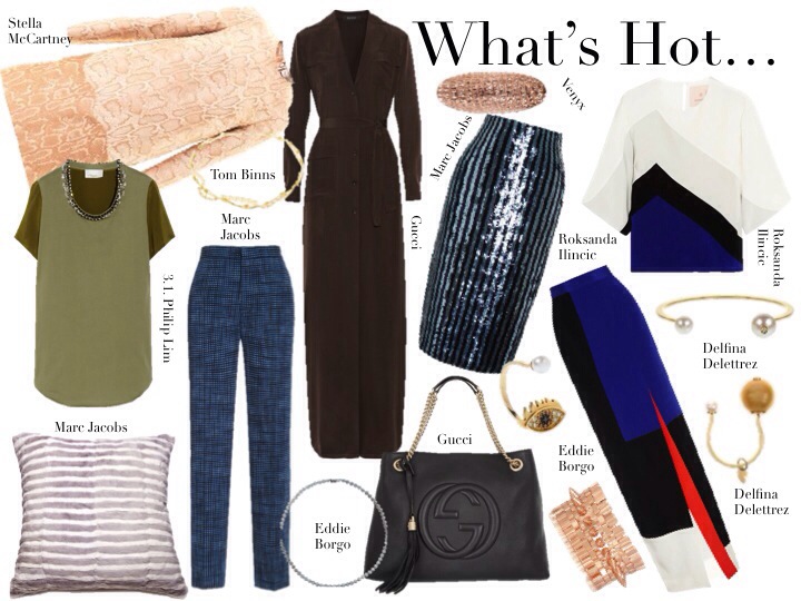 1. Chanel backpack, 2. Saint Laurent heels, 3. Givenchy clutch, 4. Miu Miu, 5. Tom Binns, 6. Proenza Schouler, 7. Prada