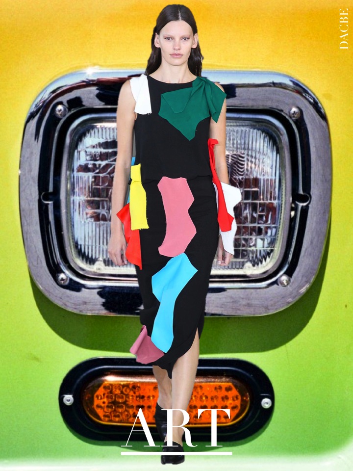 Art always go in pair with fashion. That’s why the biggest artists of SS15, Juny Watanabe and Thomas Tait, brought as cubism in new, super bold dimension. This season saw an intriguing combination of influences from Roy Lichtenstein, one of the world’s leading pop-artists, Mondrian and Sonia Delaunay. With circle motifs, bright colors and bold, intersecting stripes the collections were a truly vibrant display. Loewe, Junya Watanabe, Dries Van Noten, Thomas Tait, Roksanda.