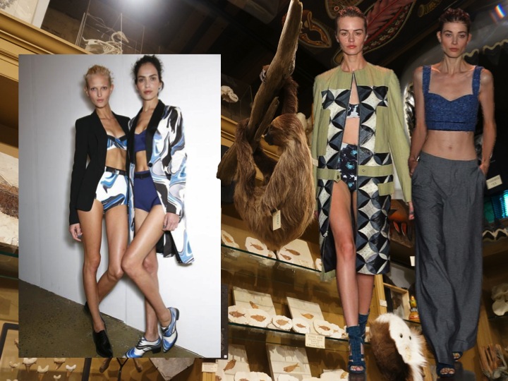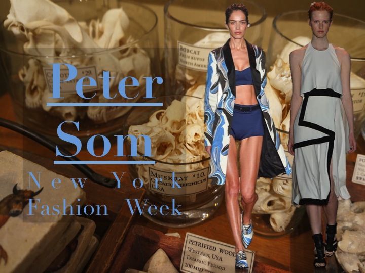 The second day of fashion week in New York is all about Summer glamour, lightness and bright prints- but not as last summer, where we could see only stripes. No it’s all about a la Emilio Pucci prints that look super sexy on the swimsuits. The Peter Som collection for SS14 was definetely one of these cool shows. The blue colours looked refreshing, just like the geometric lines and white, over large dresses! The collection was a bit about the style of mixing prints and trends- it was a pleaure to see these vintage looking shoes in leo dots mashed up into the look of the beautiful balloon white dress. This young designer’s leather speciality is for sure the eel skin- this pretty specific fabric was used to cover whole coat that looked marvellous! But, I can’t hide my impression, that Peter certainly did copy some details from past collections of his New York “in the proffesion” friends…