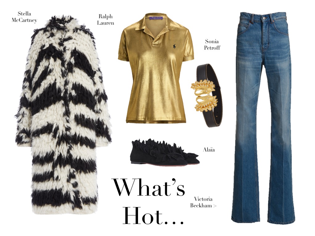 What’s Hot (6.6.24) June 6, 2024June 1, 2024 | Design & Culture by Ed Ralph Lauren CollectionSilk-satin Shirt Sonia Petroff Griffin Belt Alaïa Leather Mary Jane Flats Victoria Beckham Cropped Paneled High-rise Flared Jeans