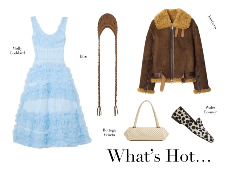 What’s Hot (28.5.24) May 28, 2024May 25, 2024 | Design & Culture by Ed Molly Goddard Mertyl Tiered Ruffled Tulle Midi Dress Burberry Shearling Jacket Wales Bonner Classic Loafers
