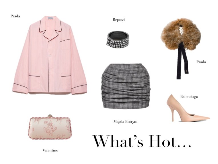 What’s Hot (22.8.25) August 22, 2025August 22, 2025 | Design & Culture by Ed GET THE LOOK: Eres Colorama Piped Silk-satin Pajama Shirt WARDROBE. NYC Contour Checked Wool Mini Skirt Balenciaga Poplin-trimmed Leather Pumps Saint Laurent Ribbon Faux Fur Scarf Valentino Carry Secrets Crystal-embellished Satin Clutch Repossi Antifer 14-karat Blackened Gold Diamond Ring