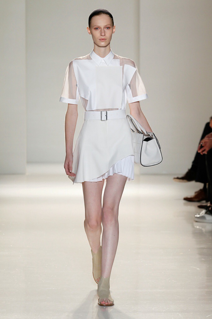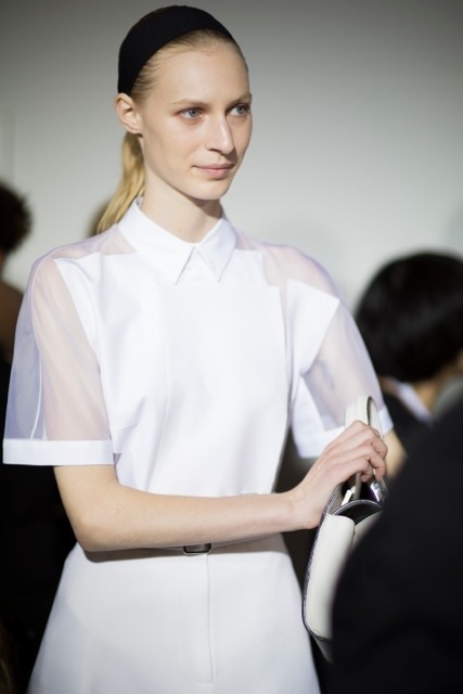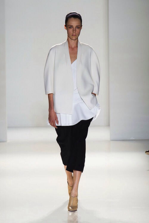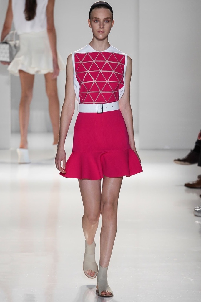 The SS14 by Victoria Beckham has it’s own, minimalistic mood, that I truly love. And by saying minimalism, I don’t mean the one that is presented at Celine or Jil Sander- Victoria, throughout the seasons sculpted her own style vision, that she’s devoted to in every collection and her everyday style. Kept in mostly black & white colours, the fuxia bright truss patterns on the shirts and skirts simply took all the brave away in the middle of the show. The jackets, bags and shoes looked all pretty comfortable, while the whole collection had it’s architectural, sharp cut in it. Victoria Beckham’s SS14 is a collection by strong women, who mixes work and family in a great style. By the way- the opening of the show was amazing- thanks to Edie Campbell, and the beautiful white-jacket-black-trousers outfit she wore!