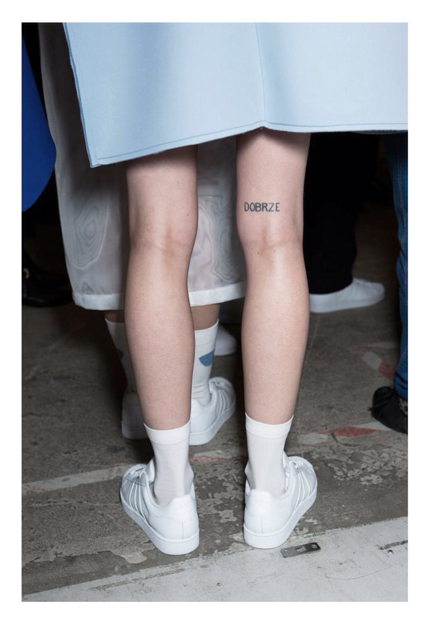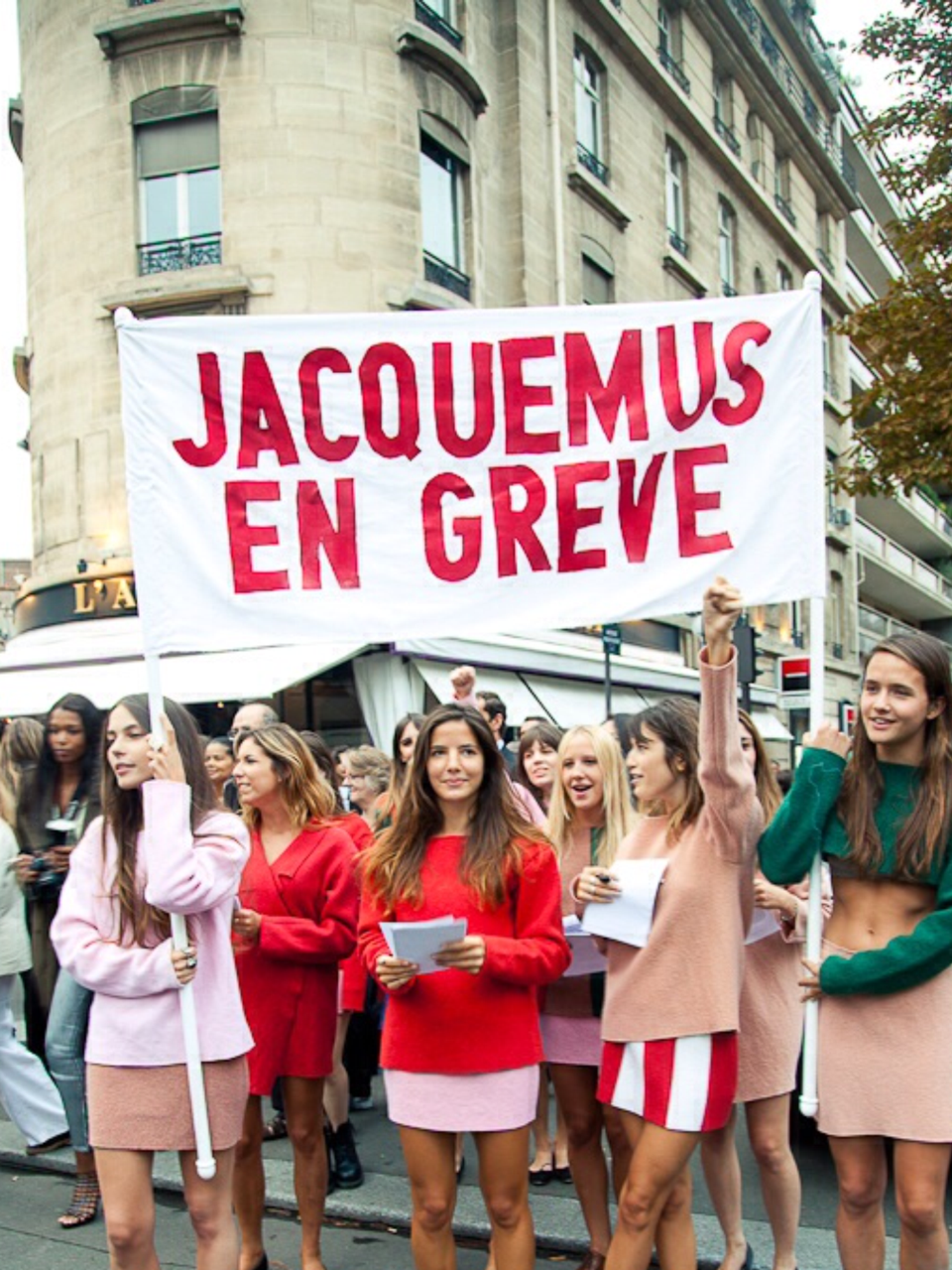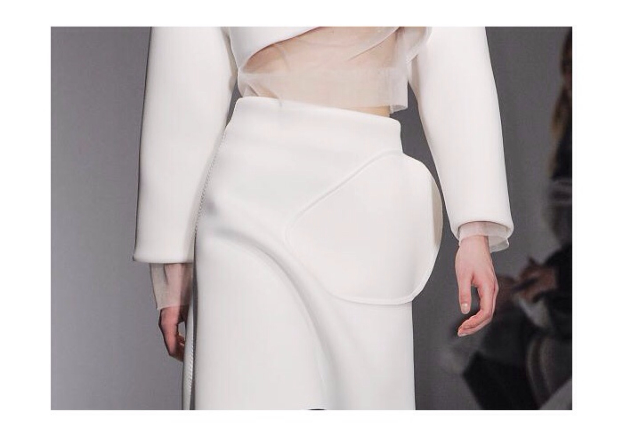 I would say that Simone Porte Jacquemus is not a typical fashion designers. His is creating fashion, that is much more conceptual, but at the same time a lot more wearable than you would think. Yes, maybe neoprene dress sounds cosmic, but at Jacquemus, in pigeon blue, it looks not pretty, but… childish? A bit femme enfant (that was the name of his AW14 collection)? Jacquemus is a brand that reminds me somehow of Rei Kawabuko’s Comme des Garcons. It’s individual, different. It won’t be copied by Zara. With the models characteristically wearing white Adidas sneakers and white socks, Simon is true to his own style- well, he also dresses like that. Always white Adidas sneaks with white socks and a Comme des Garcons white shirt.