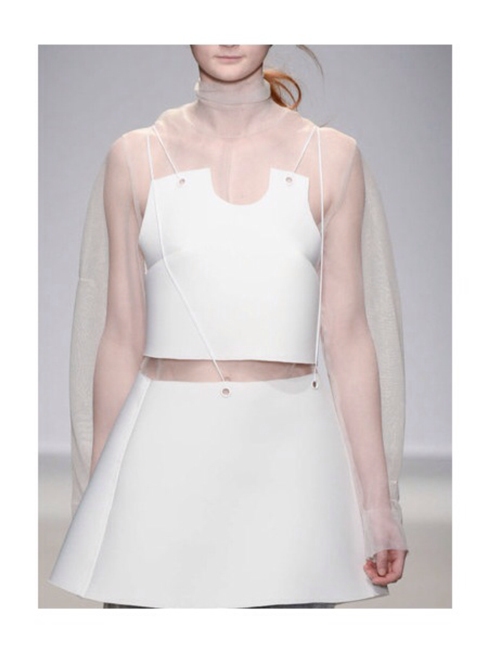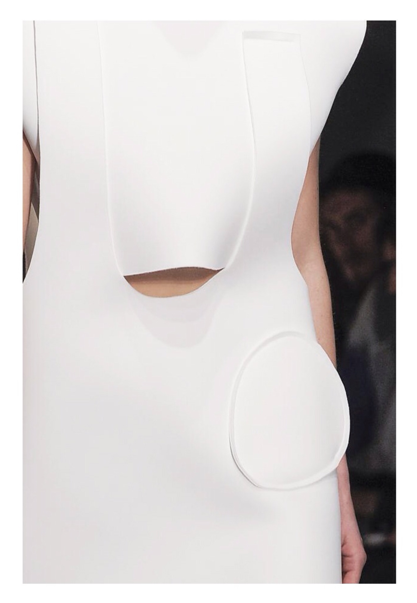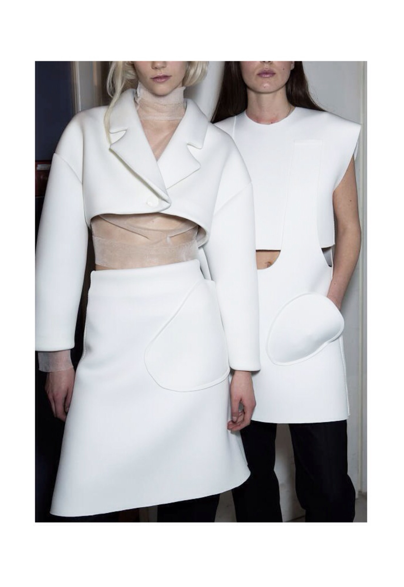 The AW14 collection was all about childish way of thinking. Round, coloured dots appeared on the transparent skirts and tops, while a lot of neoprene literally hung from white strings of cotton. Everything was all about sophistication is simple, usual things. Meaning, the imagination of a child. And, as Simon says, he feels like on! Je m’appelle Simons, j’aime le bleu et le blanc, les rayures, le soleil, Marseille et les annees 80 is the typical way he starts a conversation. So what to expect? This is a new movement in fashion (or maybe a strike- greve) against being serious!
