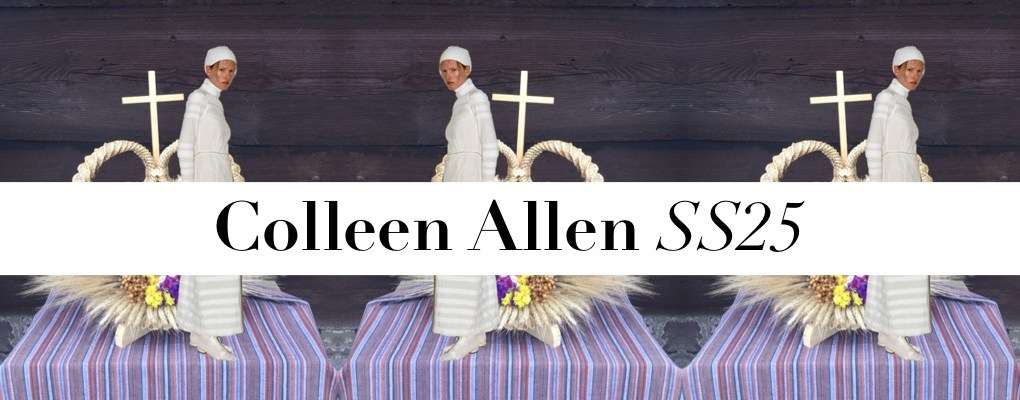 Emerging brands like Colleen Allen keep New York Fashion Week’s heart beating. But lets note that Allen can be hardly called an emerging designer with an impressive portfolio of working at some of New York’s finest institutions: Raf Simons’s Calvin Klein and The Row. But these two aren’t defining her aesthetically, as Colleen has proved in her debut collection and also in her sophomore season. Spring-summer 2025 offering is all about a play with lightness and draping. You’ve got very sensual, sheer numbers, and then you’ve got stunning, velvet-y drapings that hug the body. Some of the pieces – like the ankle-length, white dress with turtleneck – have a pastoral, even clerical feel about them, but then then the ecclesiastical regality is twisted and subverted with sexy lace of hemlines and body-revealing slits of blouses and jackets. It’s also worth noting that Colleen has a brilliant sense of color: just look the the opening shade of tangerine. Retailers, here’s a brand to buy into.