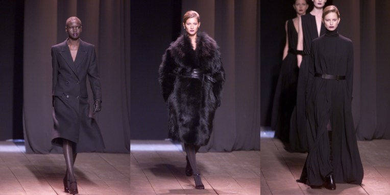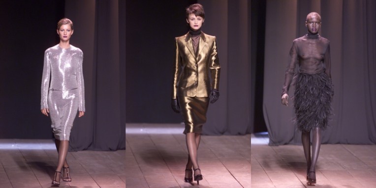 All that holiday season is also a good time for induldging in the fashion archives. Many don’t know that (or simply don’t remember – or were barely born then!) Alber Elbaz worked as creative director of Yves Saint Laurent from 1998 until he was fired after three seasons when Gucci bought the company in 2000 and Tom Ford took over the creative direction. Autumn-winter 2000 was Elbaz’s last collection for the maison, but also his best. As Vogue’s Hamish Bowles recalls, “he finally hit the target with a controlled collection that proved a strong modern take on the house’s timeless chic. Elbaz elongated and chiseled the classic proportions of the trademark boxy jackets and pencil skirts, and showed them with black glove-leather shirts with matching narrow ties – a cool, modern spin for the classic YSL suit. With satin revers on an overscale man’s Crombie coat, he also gave a contemporary twist to ‘le Smoking.'” Looking at the collection now, it feels so relevant and distinctly YSL at the same time. Leaving ‘grand soir’ statements to the master Yves himself and the haute couture collection he continued to design at the time, Elbaz sent out a capsule of few, after-dark looks for his finale. Classic metallic lace looked chic again, in long-sleeved midi dresses styled with hip-slung crocodile belts and wrinkled ’70s cavalier boots. Great-looking tarnished brass lamé suits with black chiffon blouses, body-skimming cocktail dresses in black slipper-satin, and entrance-making flapper dresses were followed by a final stylish take on a YSL classic – the sheer black chiffon blouse with a skirt made entirely of ostrich feathers. No wonder why after this collection, Lanvin invited Elbaz to take over the brand… and he did wonders there for more than a decade!