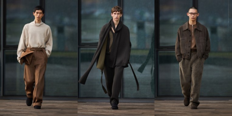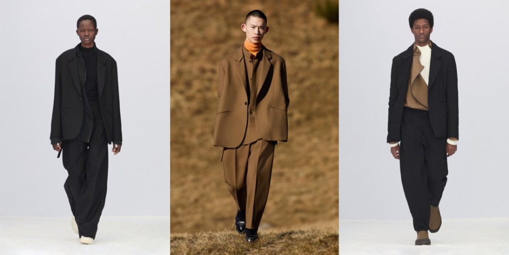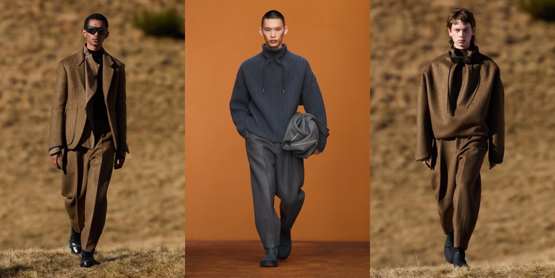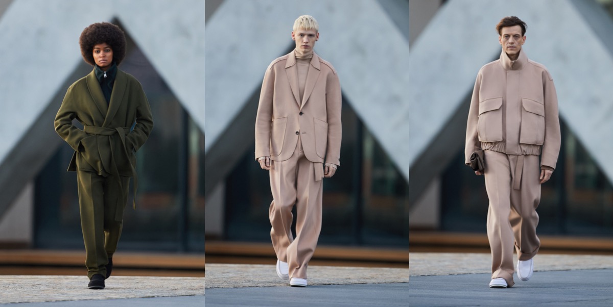 Men’s Milan Fashion Week has officially started! And here’s lesson number one: you just can’t go wrong with Zegna. I know it myself – I’ve got a couple of my dad’s clothes coming from the brand, and really, this brand is not just timeless, but its quality is indestructible. Alessandro Sartori, Zegna’s creative director, embraces what the Italian brand stands for with every season, delivering absolutely desirable, refined and relevant investment pieces for a contemporary man. For autumn-winter 2022, Sartori said he was presenting “il nuovo abito“: the new suit. Yet this collection represented something far bolder than that. It was a tilt at meeting that migration by erasing the categorical imperatives that have long codified menswear. These old-fashioned either-ors include formal and casual, sartorial and sporting, street and fashion, executive and worker, masculine and feminine – all of them habit-forming dichotomies that signpost the traditional menswear roadmap. This shift came in sync with multiple others in Zegna’s landscape. Early last month the company dropped the Ermenegildo from its title and also quietly phased out the really excellent sub-brand Z Zegna in order to combine everything under one mainline menswear empire. The simplification is meant to add emphasis to the Zegna identity, which is now represented by a signifier-logo that sandwiches the brand name within two vicuna-toned strips of brown with a strip of black between them. The logo represents the road that winds through the 100 km2 of land – the Oasi Zegna – that the original Ermenegildo purchased, reforested, and conserved in order to increase the quality of life and wellbeing of the employees and their families at the original Zegna lanificio, which continues to operate today. Another categorical dichotomy that Sartori has worked to blur is that of physical vs digital – fashion-wise, phygital was first coined here back in 2020. Today’s presentation had been planned as what Sartori today called “metatheater – not the metaverse – a combination of cinema, fashion, and live… My goal is a digital background to a live presentation, and I am sure we will do it in June.” The latest offering was shot between the Oasi Zegna and a Milan TV studio over five days. But those clothes don’t need any additional, fancy background. A dark, gabardine jacket that featured an eye-catchingly unorthodox notch lapel construction, no bolstering material in the shoulder, and no buttons at its split cuff. This was worn atop matching pants, vaguely carrot shaped like most here, and the handsome galvanized slip-on ankle boots that were also shown on most looks treading through the snow in the Oasi. Under the jacket was an oatily-toned midlayer that featured a one-sided, curved flap that lent the look a roguish, piratic air. When the model took the jacket off, it turned out that midlayer was a soberly silhouetted technical turtleneck whose curving came from the shape of the zippers running across the body. You could see the fossilized remains of both sportswear and tailoring in the look’s elements, but when worn as an ensemble it did, indeed, look like an outfit that was uncategorizable as either. Other highlights included sharply silhouetted deformalized jackets and pants in ultra-thin padded fabrics, parkas in wool ripstop, and shirting with fabric-soft panels of leather cut into their cashmere whole. Knitwear featured tonal jacquards whose abstract shapes reflected the patches of forest and snow they were shot against. Whether in camel hair, scuba, or cashmere, the shacket-and-pant fusion ensemble – a luxury-chore-jacket-workwear outfit meets supremely-soft pajama – was well represented and made a powerful candidate for Sartori’s post-abito habit.